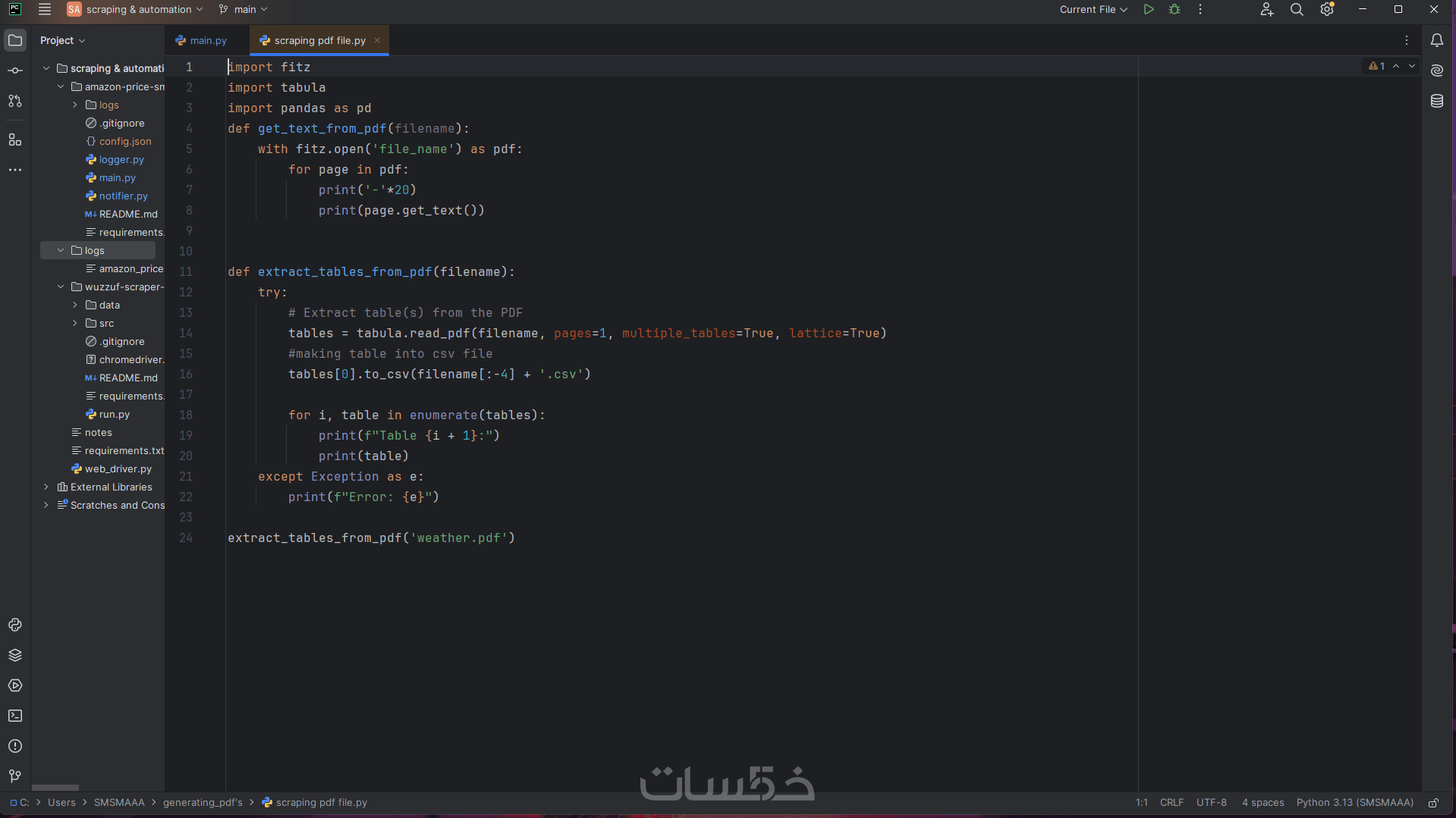 سحب واستخراج بيانات من صفحات النت Web scraping