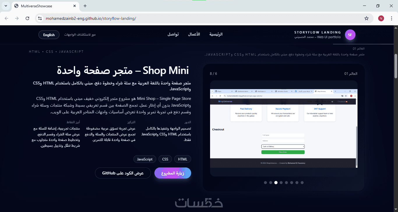 تصميم وتنفيذ صفحة بورتفوليو، صفحة هبوط تفاعلية احترافية