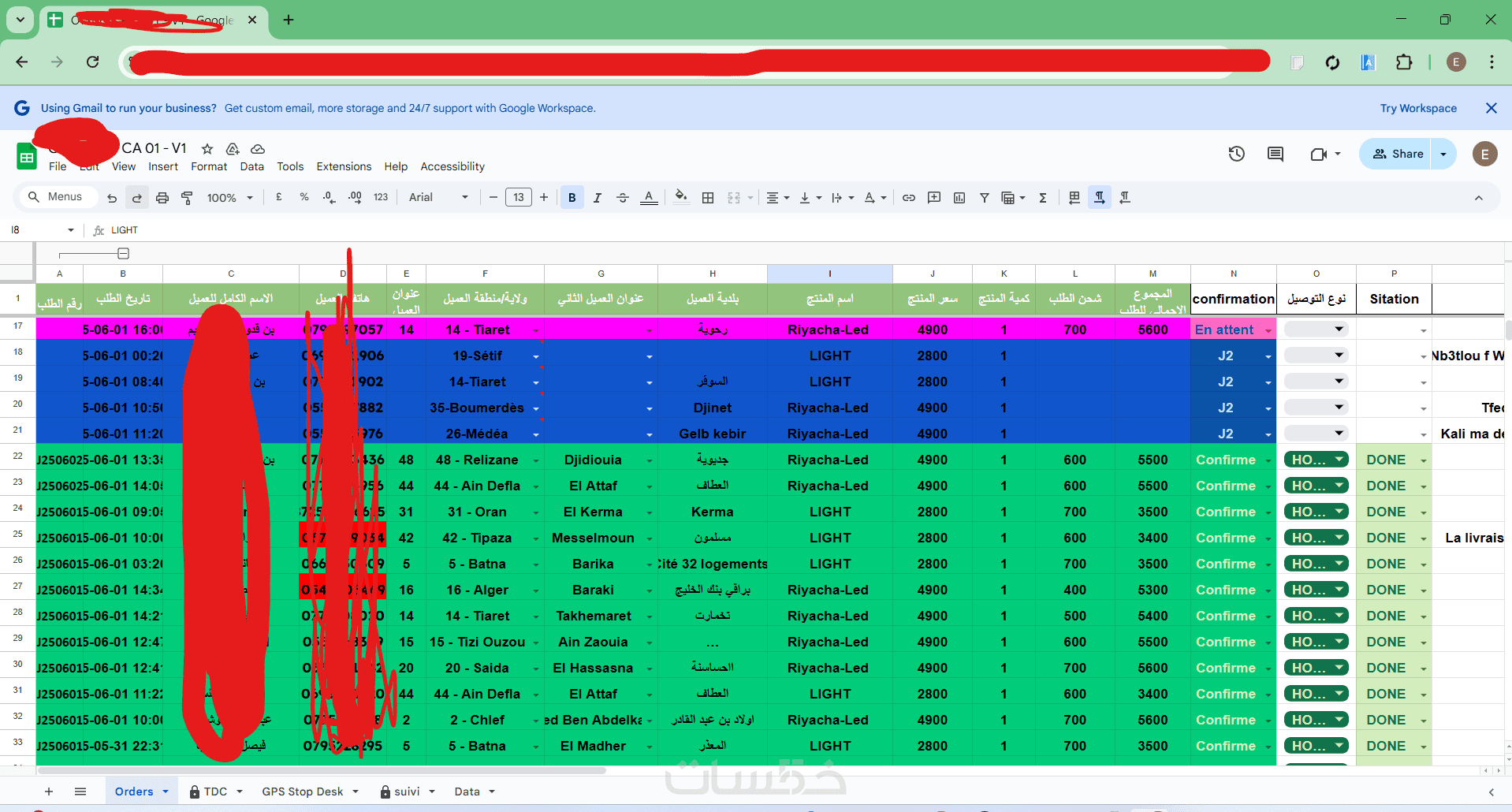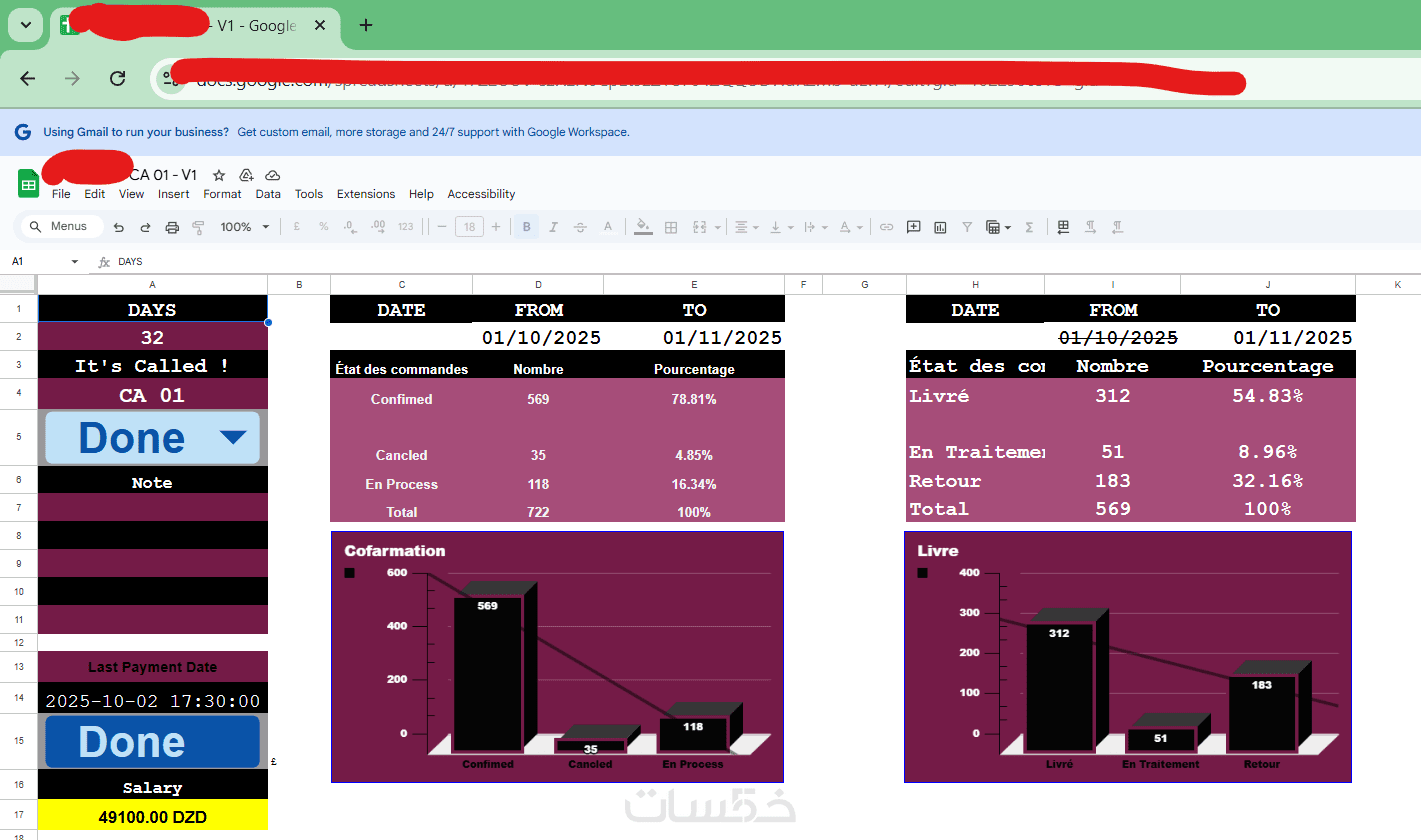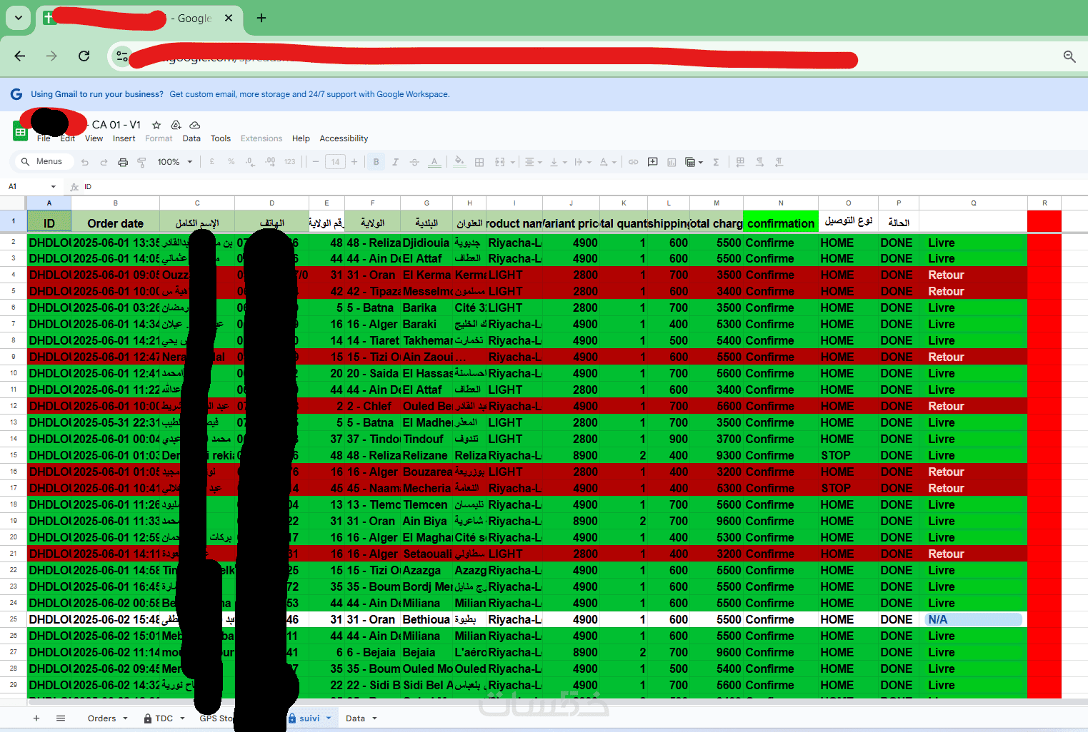 ربط جوجل شيت مع شركة توصيل DHD Livraison و كل ECOTRACK.DZ