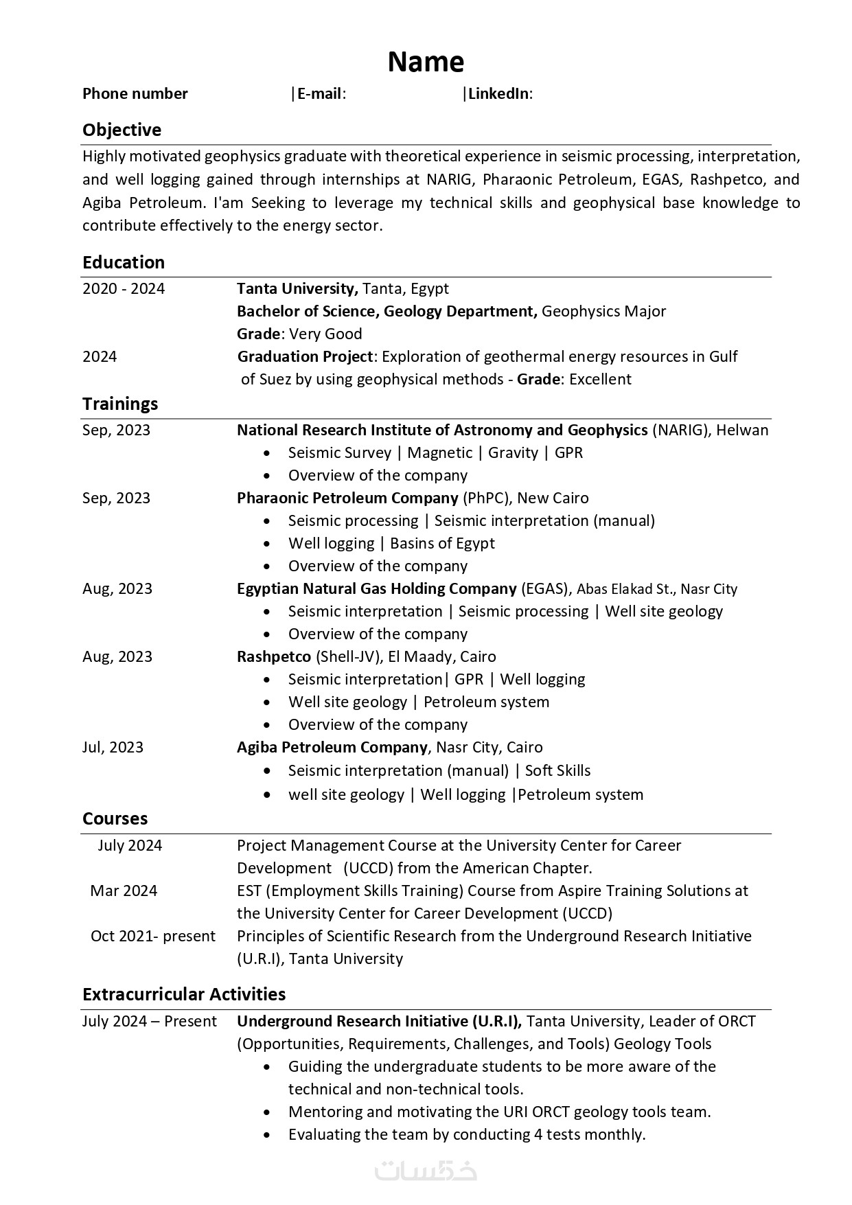 كتابة سيرة ذاتية احترافية او C.V لعدد 2 صفحة باللغة الانجليزية والعربية