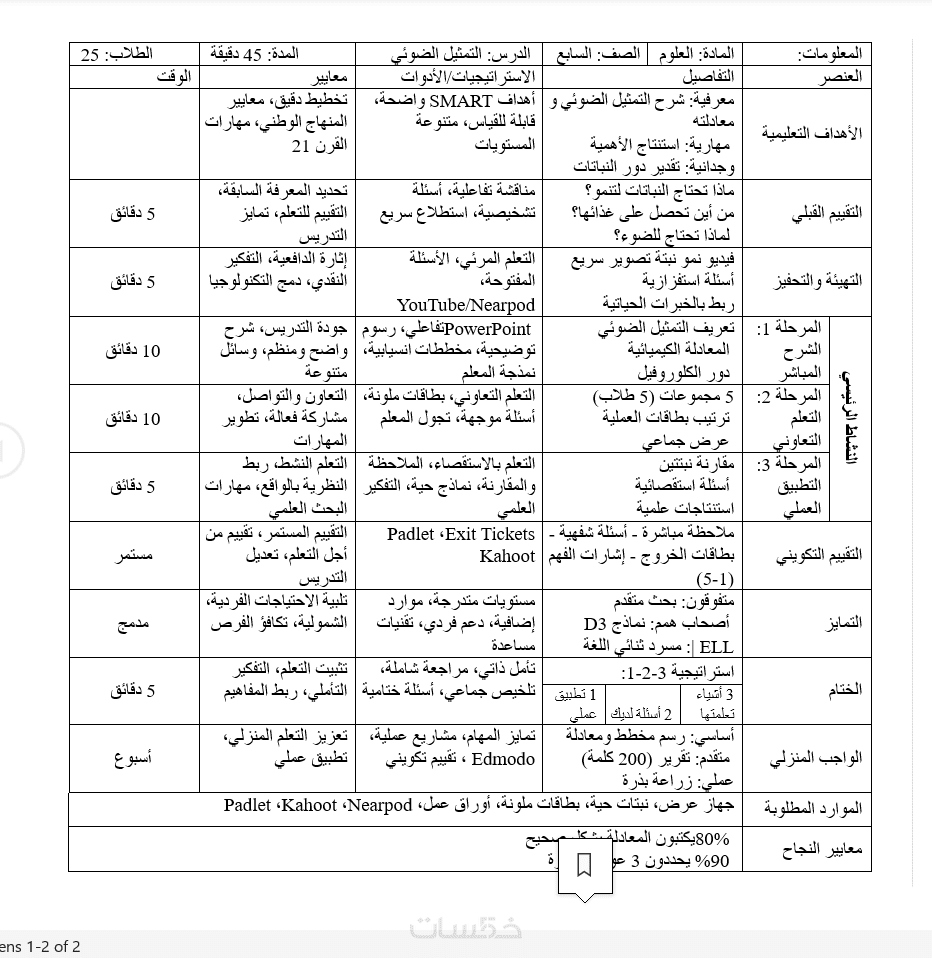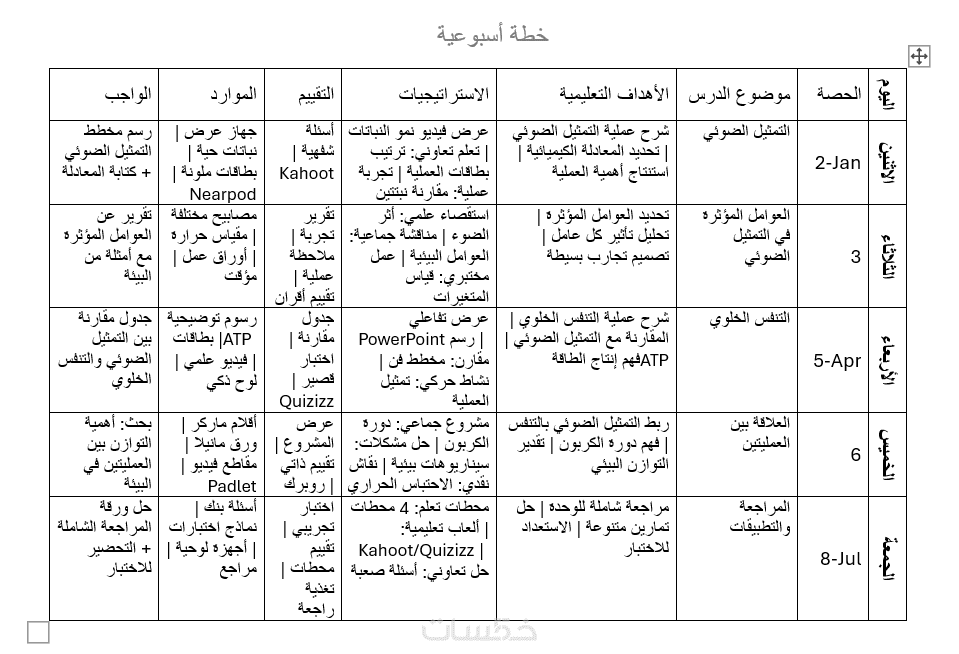 خطة تعليمية جاهزة حسب طلبك (فصلية / أسبوعية / يومية).
