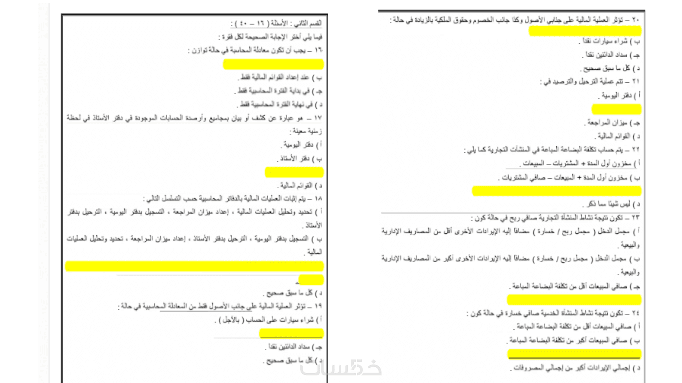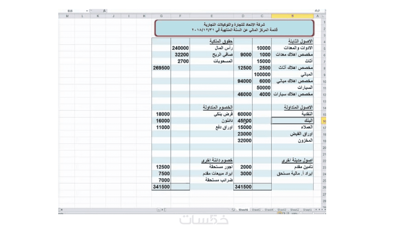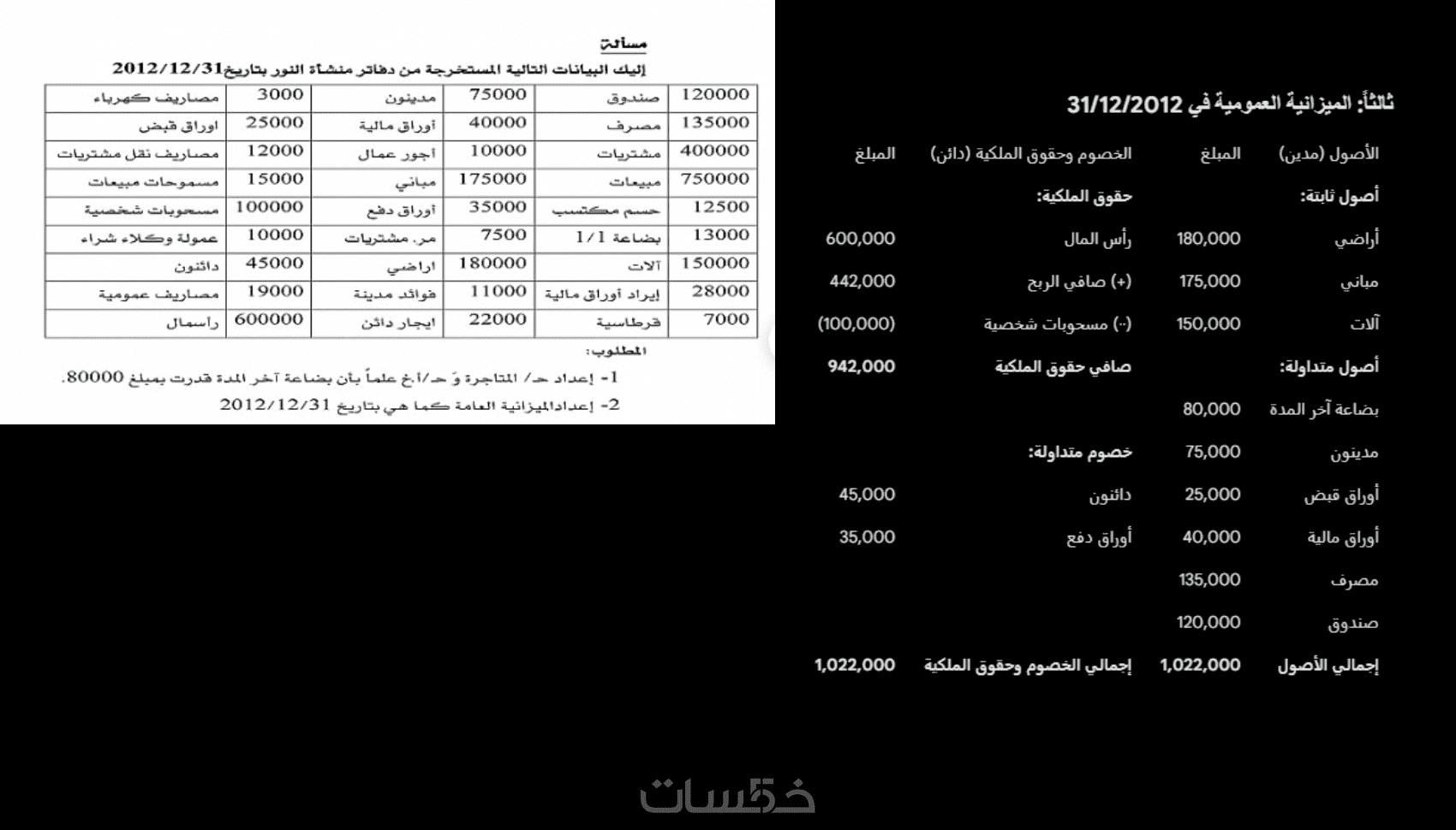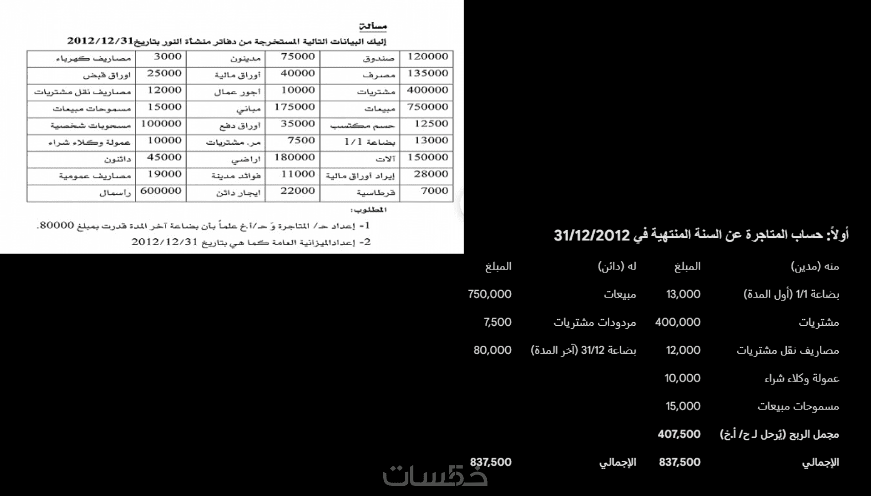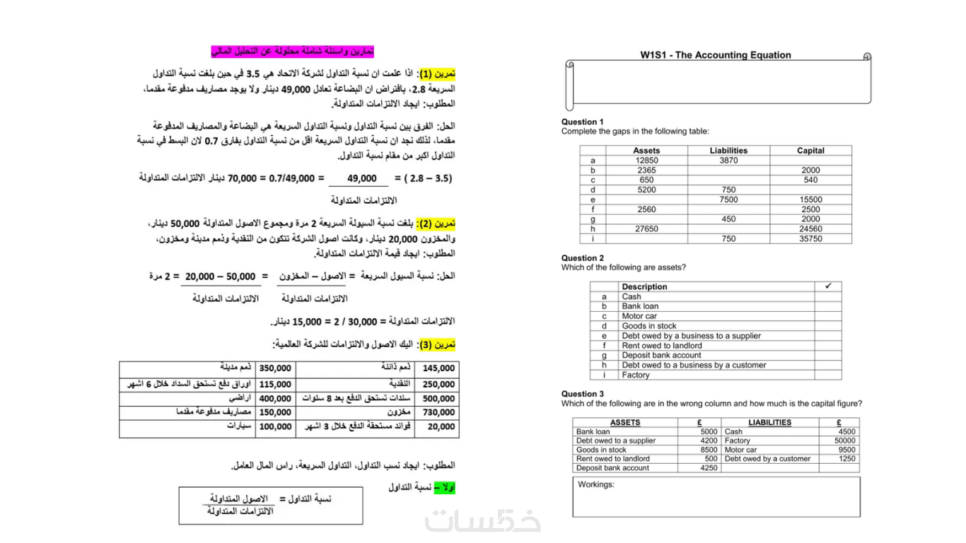 حل نموذجي لمسألة محاسبية (باللغة العربية).