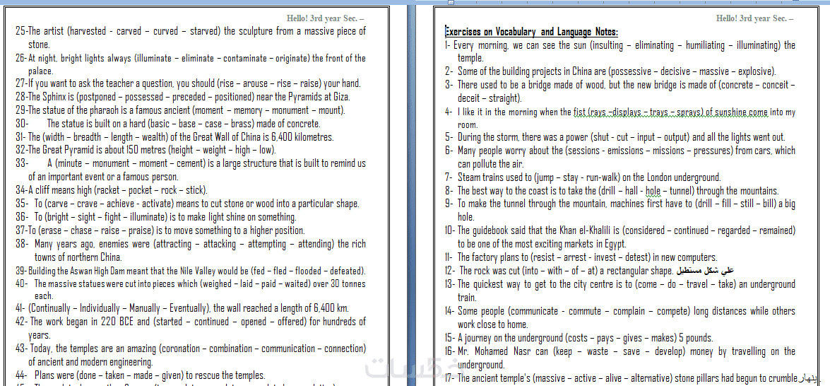 اقدم لحضرتك خدمة تلخيص الوحدة الدراسية تشمل شرح لاصعب خمسون سؤال تشمل الكلمات والقواعد مع بعض النصائح المطلوبة قبل دخول الامتحانات والتهيئة والتركيز على اسئلة الامتحانات المتوقعة وحلها وشرحها للوصول الى الدرجات النهائية فى الامتحان ان شاء الله .