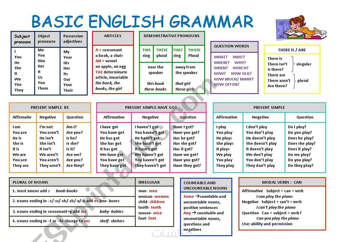 شرح مبسط لقواعد اللغة الإنجليزية للأطفال