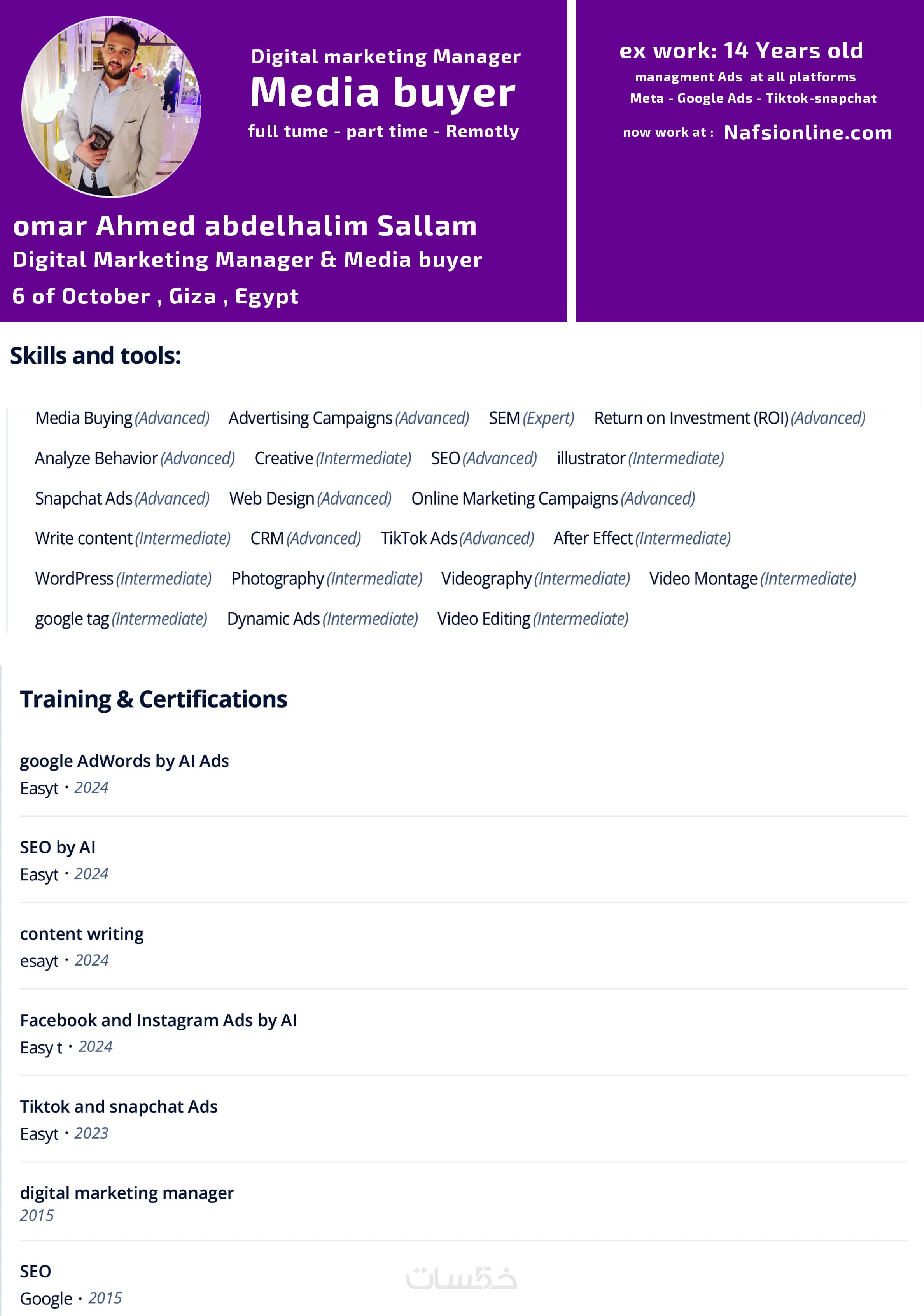 - صياغة النبذة التعريفية الخاصة بهم فالمسوق الرقمي خبير في كتابة الإعلانات والمحتوى الترويجي لذا استبعد فورًا من تجد أسلوبه ضعيفًا أو تشوبه الأخطاء.