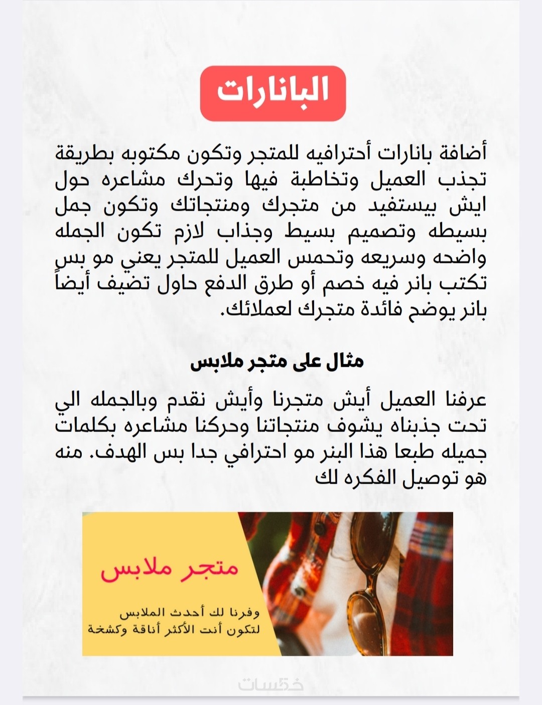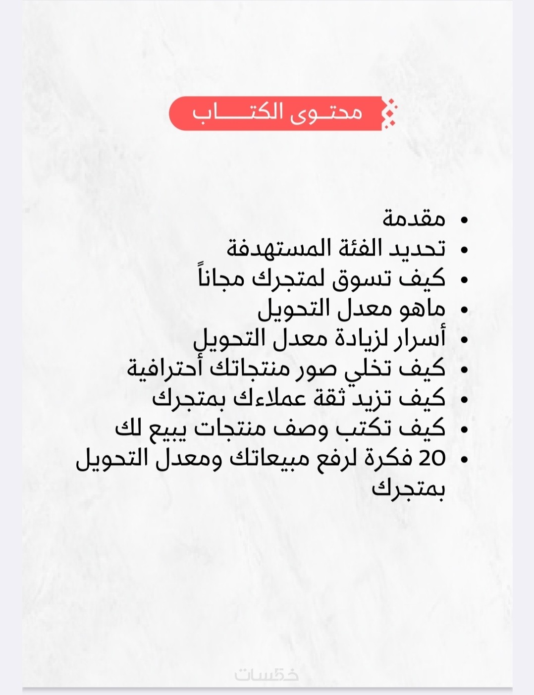 عشان كذا أنشئنا لك كتابنا الرقمي الي يحتوي على العديد من المعلومات القيمة الي بتطور من طريقة تفكيرك وتزيدك مهارات عشان تقدر تسوق لمنتجاتك بطرق أحترافية وجاذبة تمكنك من الحصول على المزيد من العملاء والمبيعات