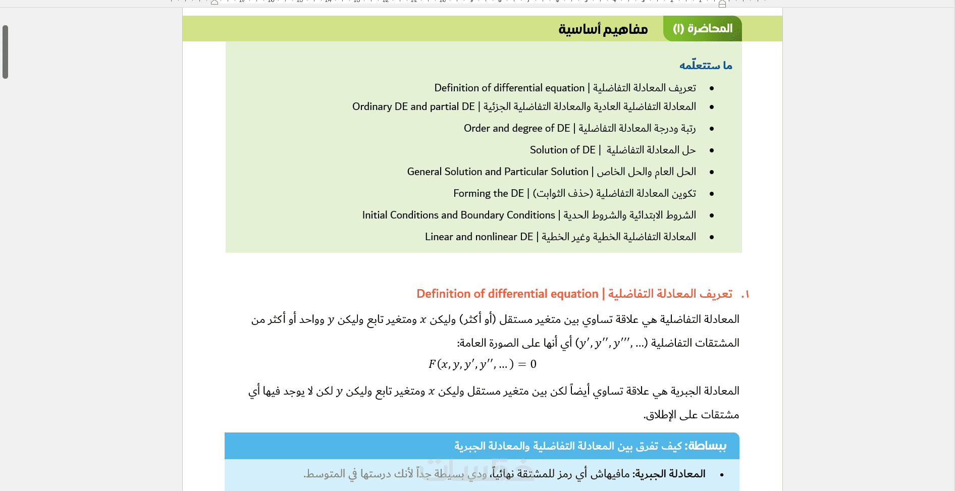 - المعادلات التفاضلية