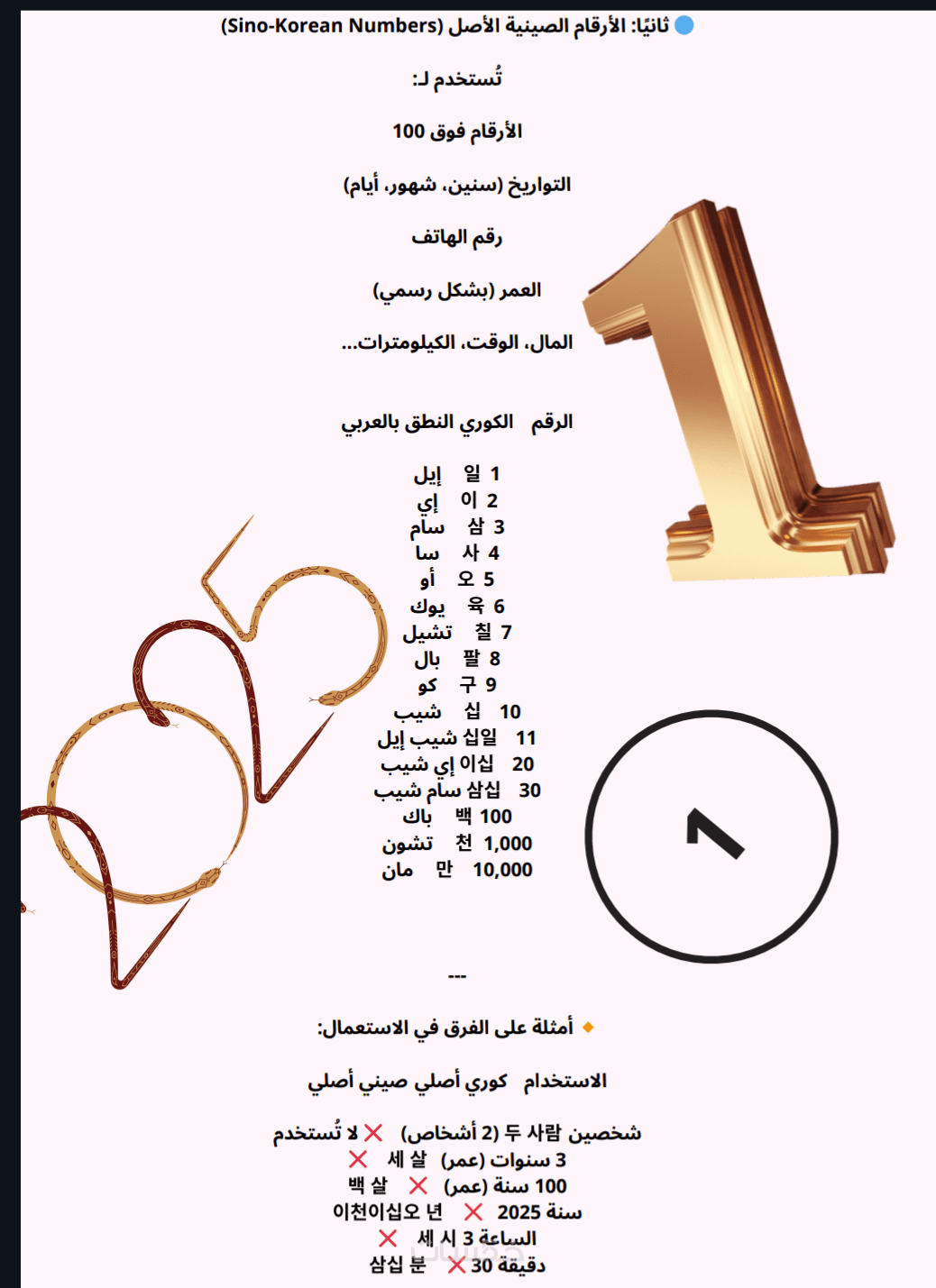 يحتوي الملف على شرح منظم ومتدرّج يبدأ بالحروف الكورية (الهانغل)، مروراً بطريقة النطق الصحيحة، وتكوين الكلمات، وصولاً إلى أساسيات القواعد والتعابير الشائعة المستخدمة في الحياة اليومية.