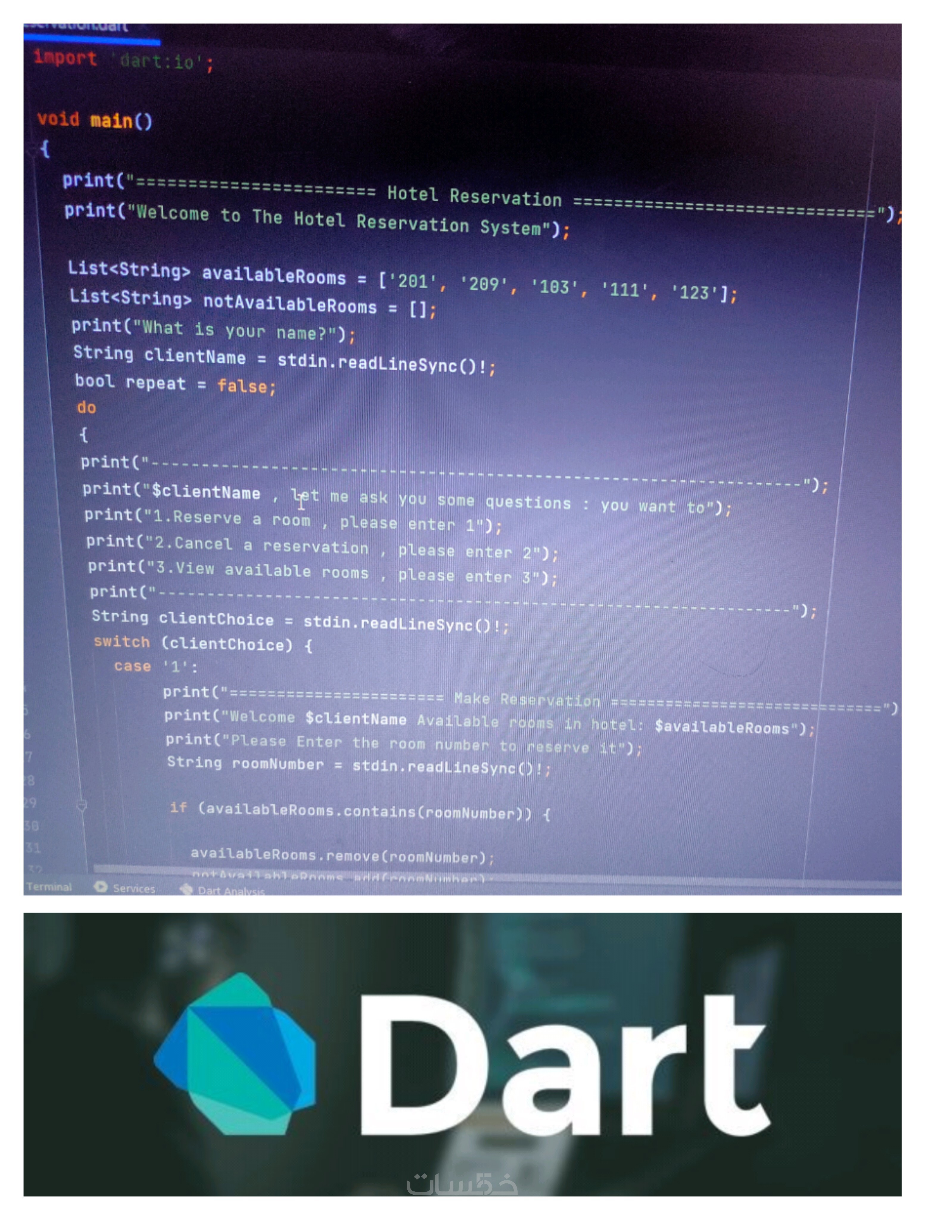 اقدم خدمات لحل التمارين بلغة dart تشمل :