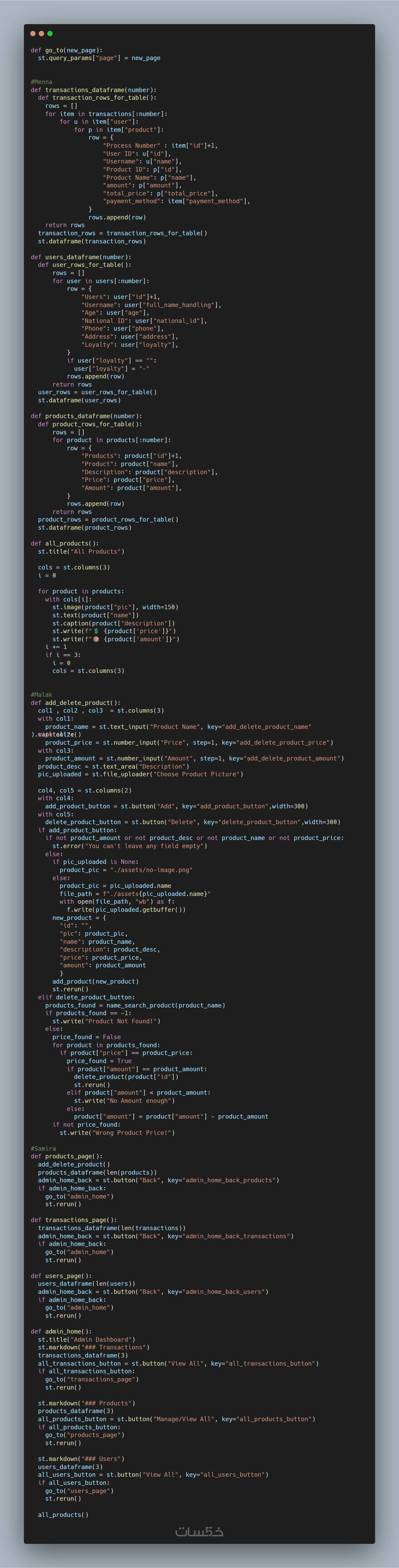 تنفيذ المشروع كاملا (حتي 750 سطر)