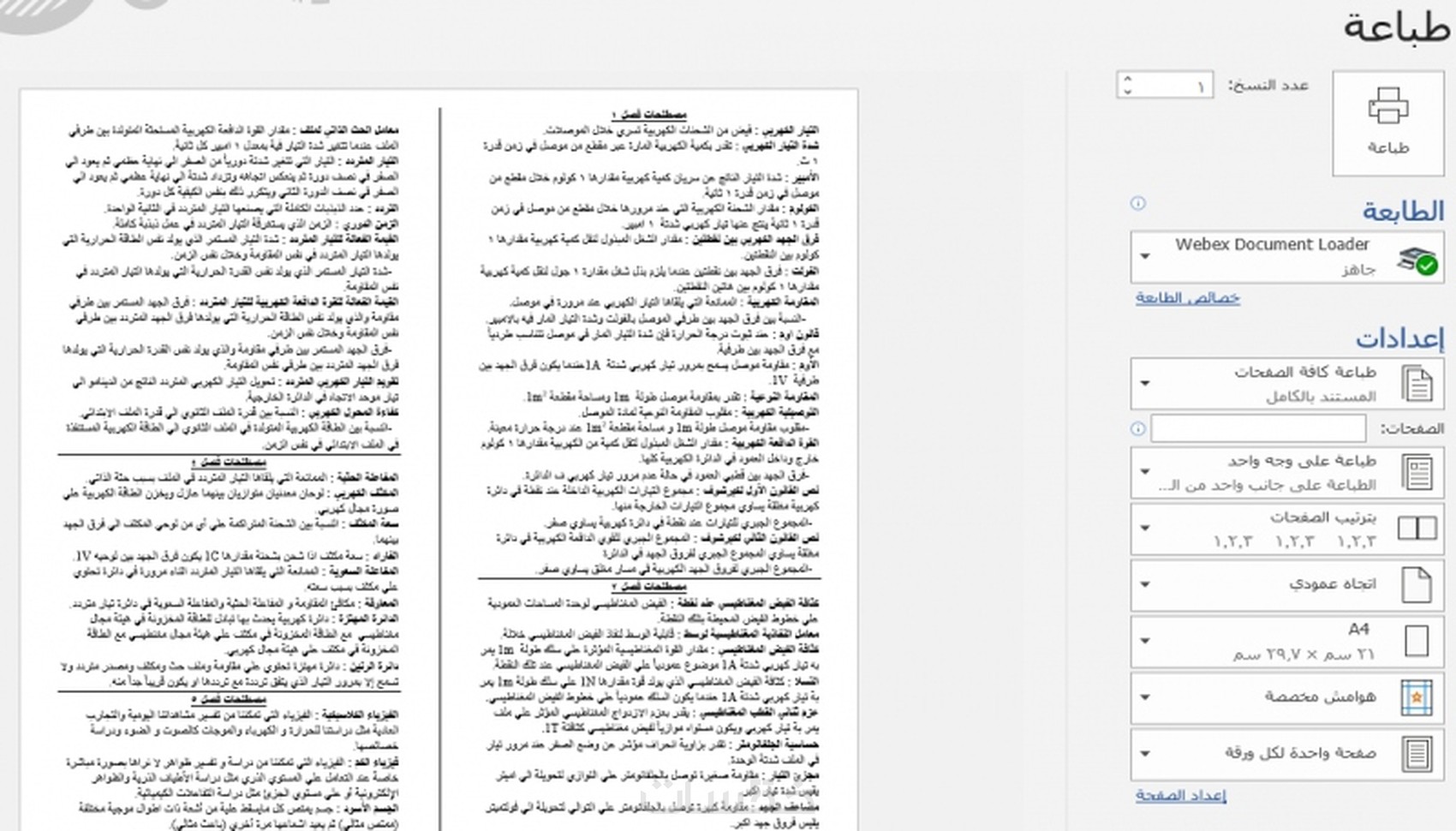 4-قواعد : تشمل قواعد الاتجهات للنز و امبير وجميع قواع المنهج في صفحة 1 مقسمه الي عمودين.