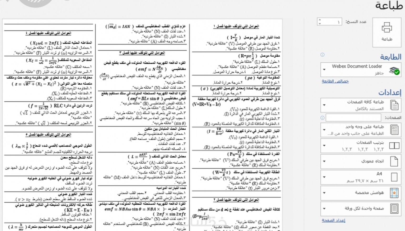 5-القوانين : قونين المنهج كامل في صفحة 1 مقسمه الي عمودين.