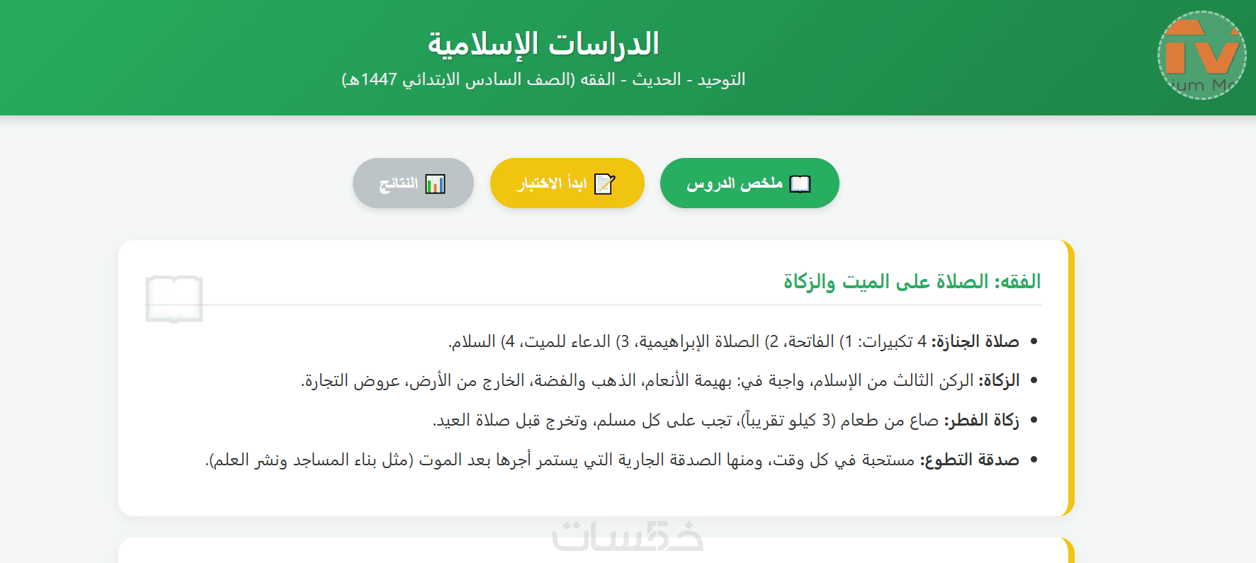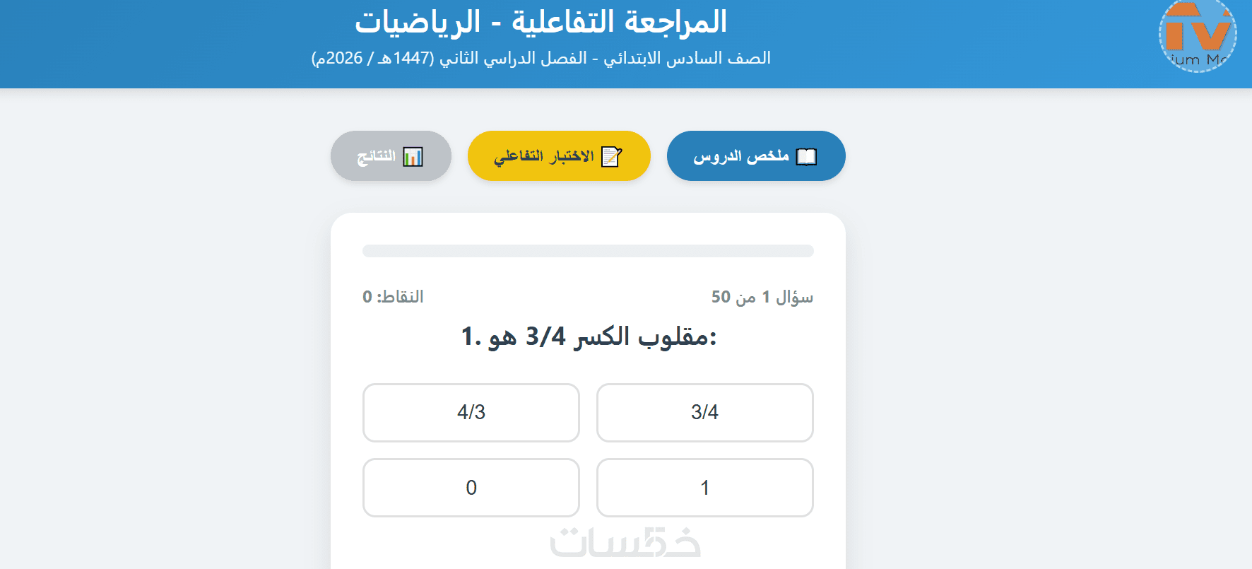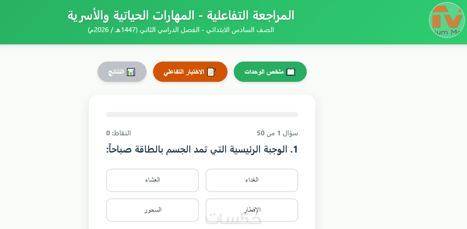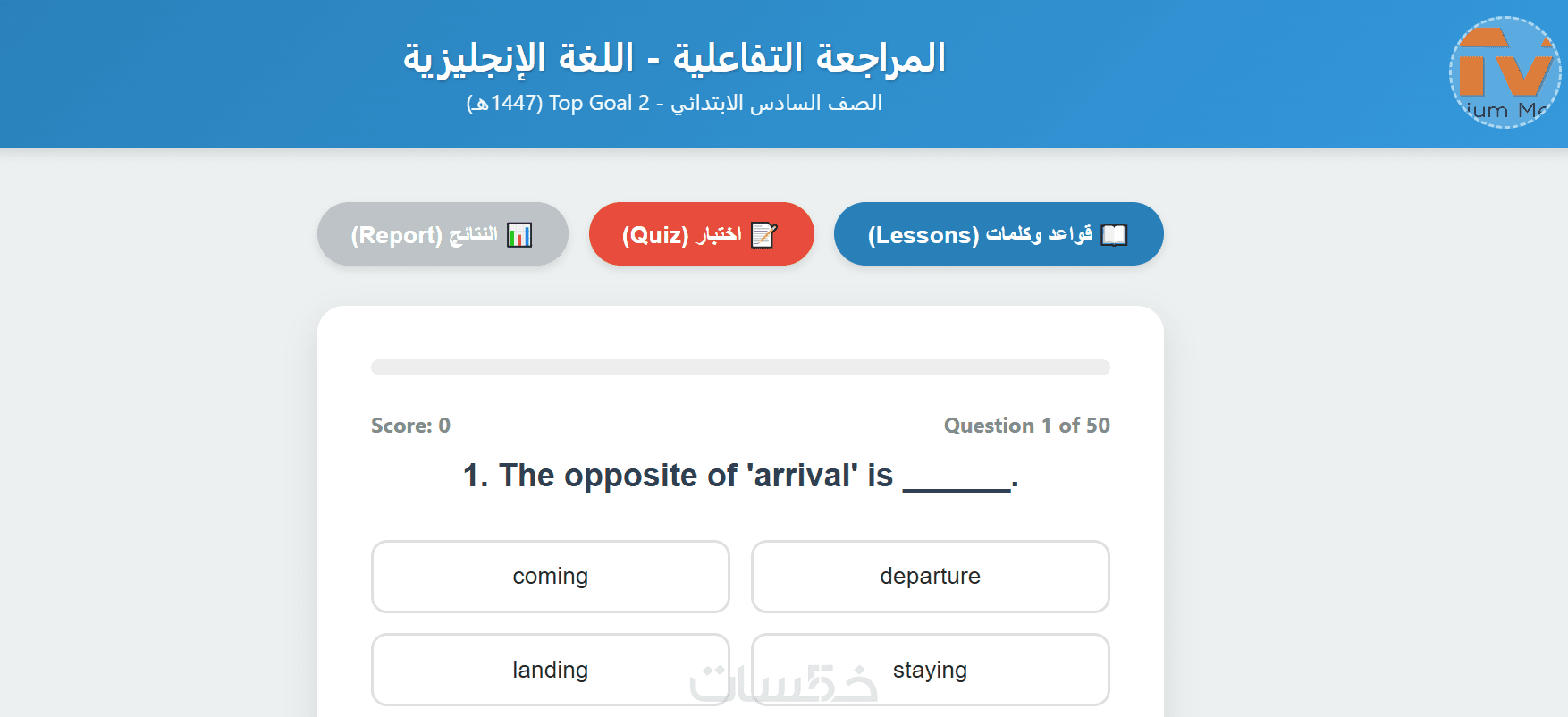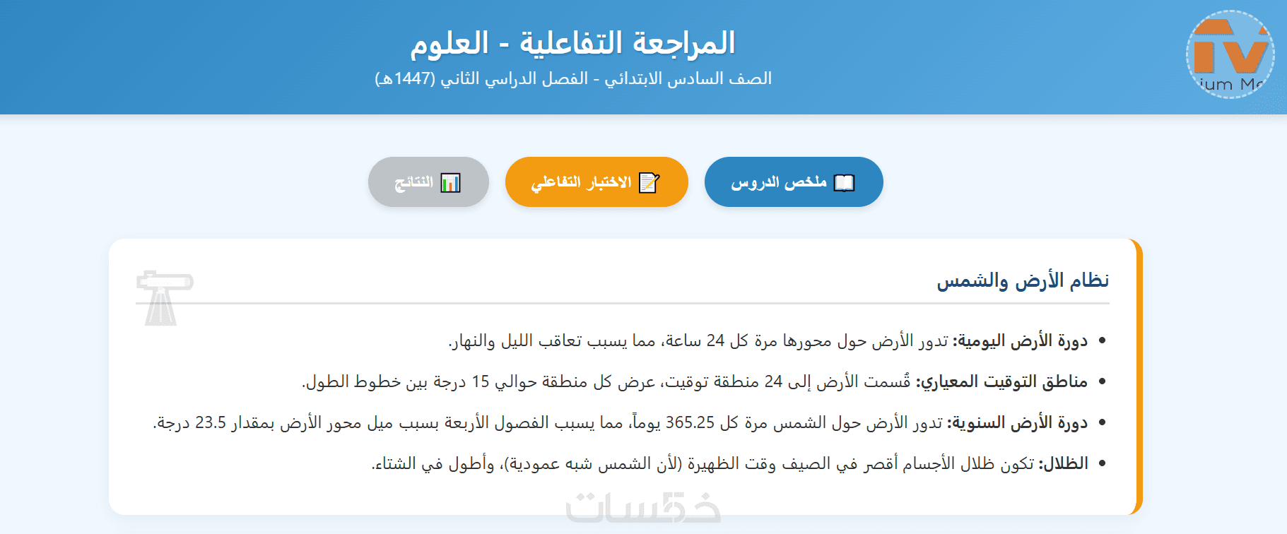تصميم مراجعة لكافةموادالصف06 للبرنامج السعودي مع إختبارات تفاعلية تضم 50 سؤالا لكل منها.