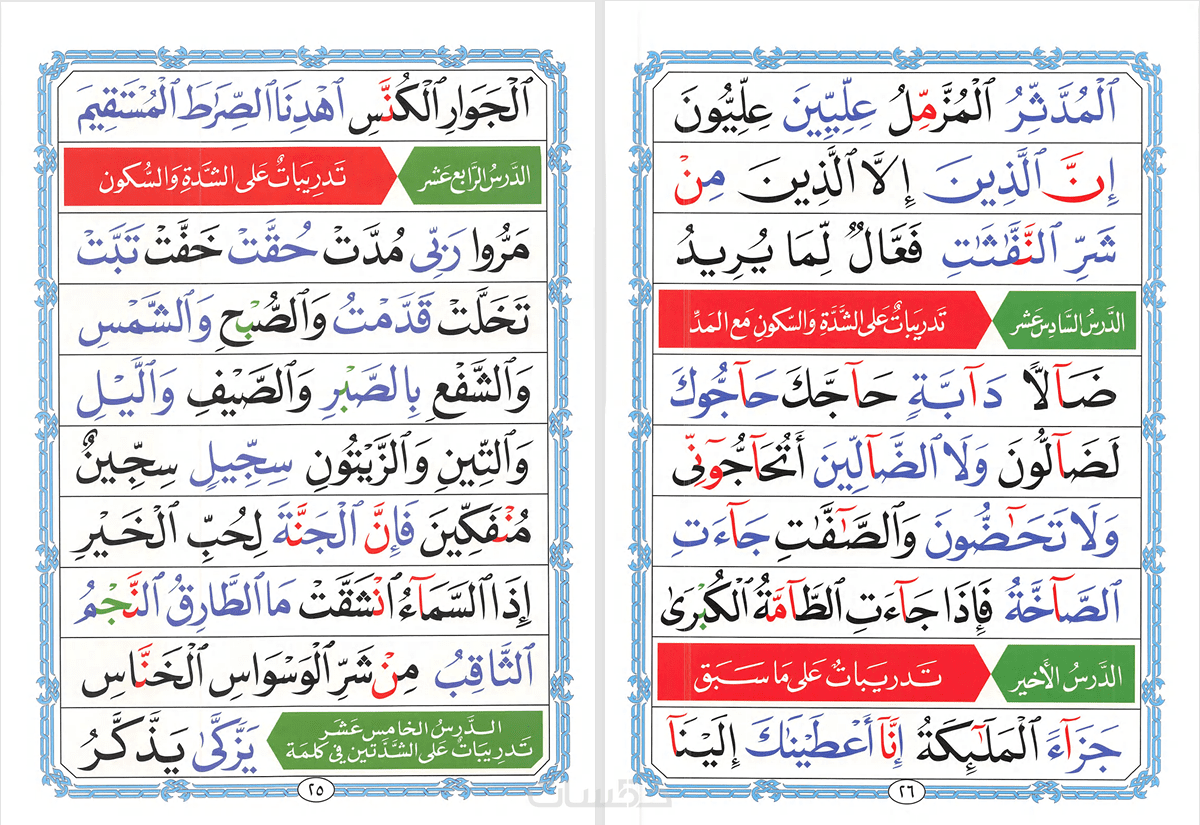 القاعدة الأساس في تعلم القرآن الكريم هي أن المعلم يحرص على أن لا يتجاوز المتعلم جزءا حتى يحفظه، وإذا تجاوزه يلتزم مراجعته من حين لآخر حتى يستقر في ذاكرته.