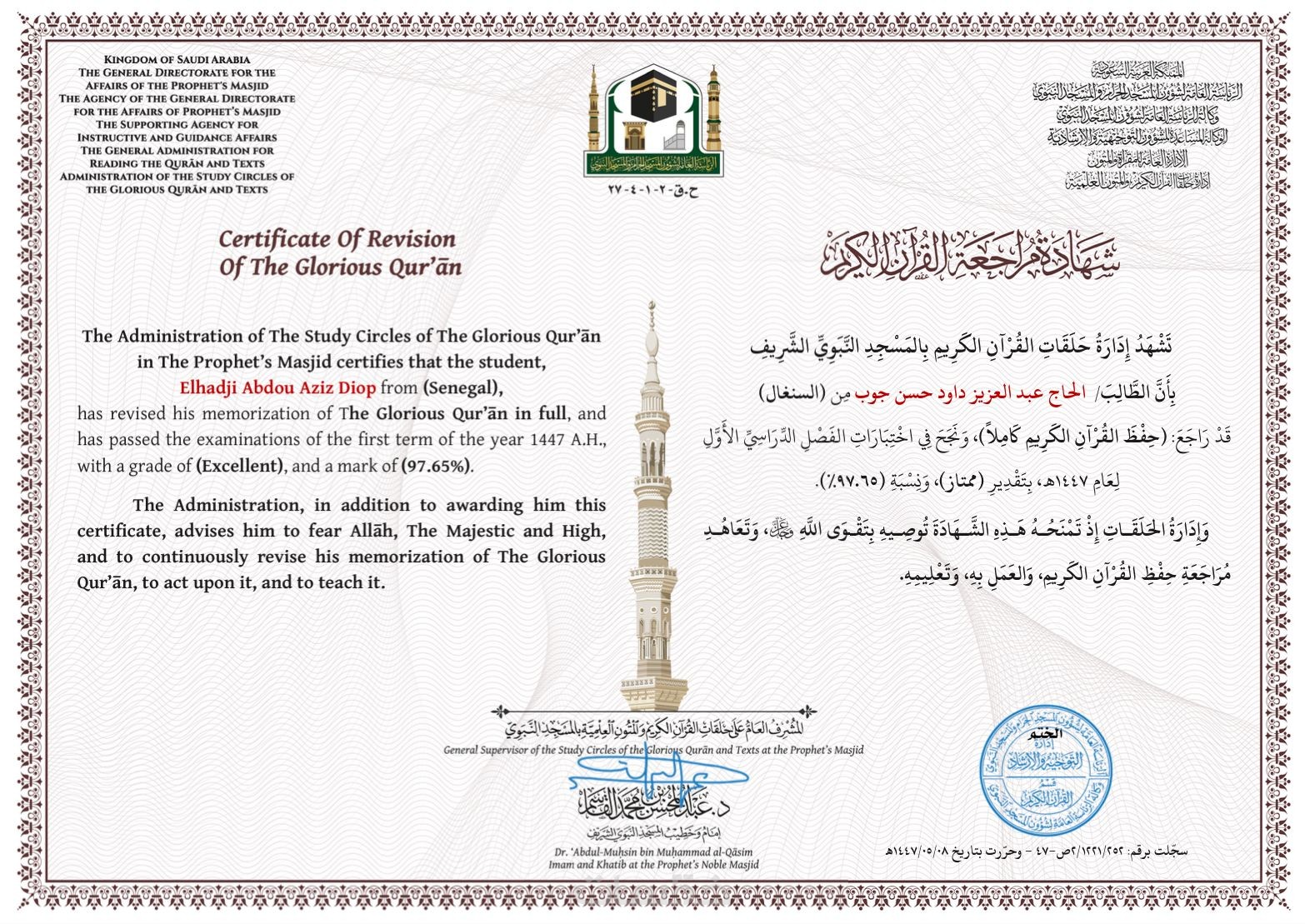 مرحبًا،معكم الحاجي عبد العزيز، حاصل على إجازات في القرآن الكريم والمتون العلمية من حلقات المسجد النبوي الشريف.