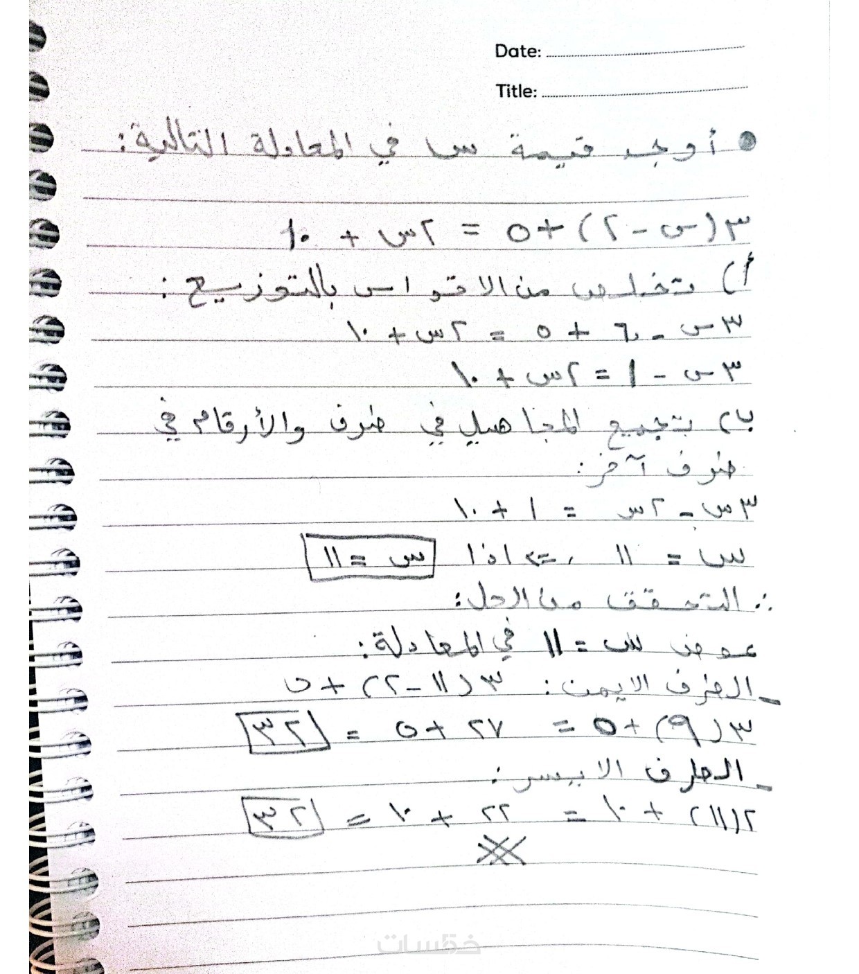 تشمل هذه الخدمة حل وشرح مسائل الرياضيات بشكل واضح وخطوة بخطوة، بهدف مساعدة الطالب على الفهم الحقيقي وليس فقط الوصول للإجابة النهائية.