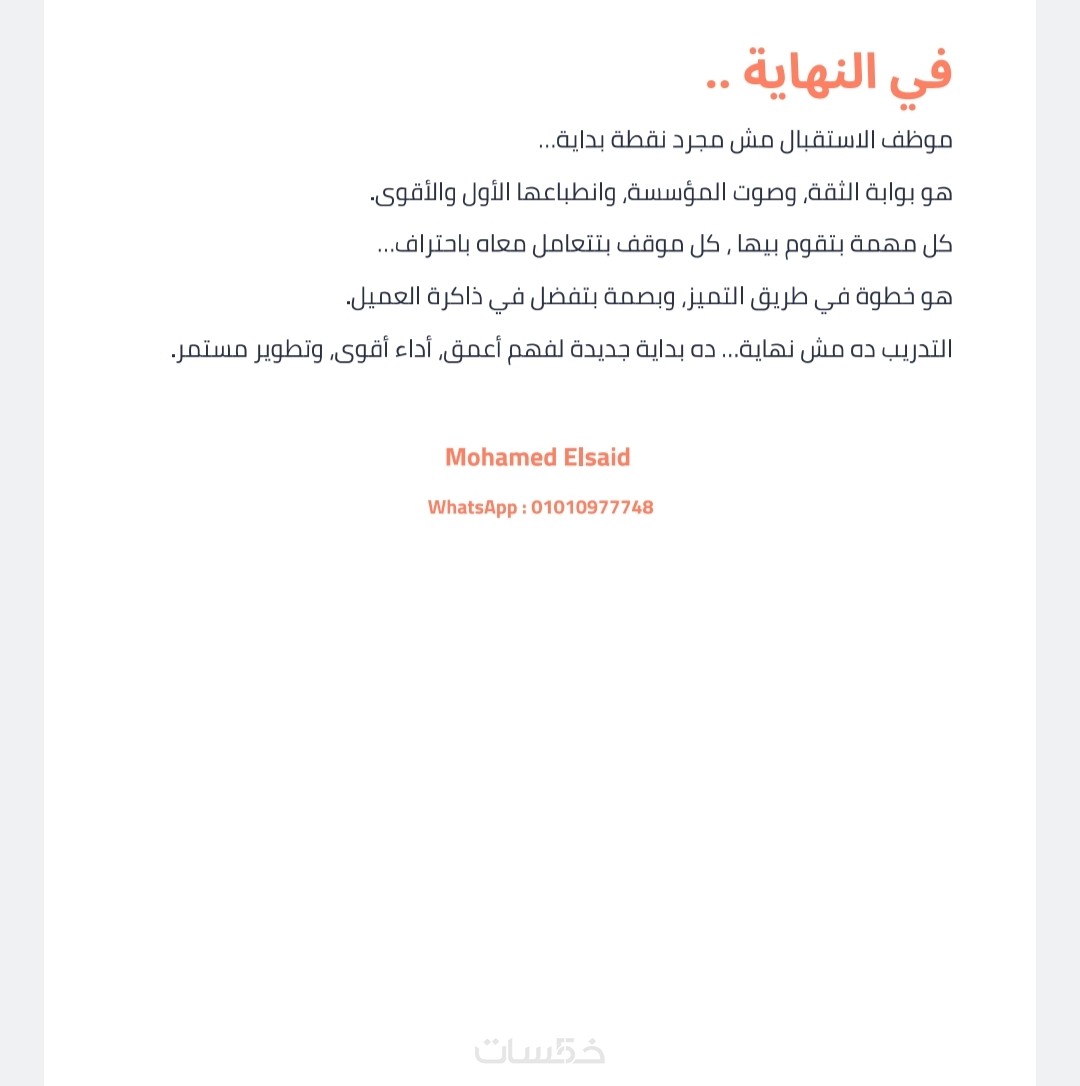 انا محمد السعيد خبرة اكثر من ٨ سنوات في مجال الإستقبال و تدريب موظفيم الاستقبال