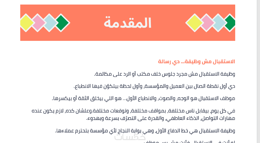 - ملف PDF يحتوي على الدورة التدريبية بعنوان "فن استقبال العملاء"