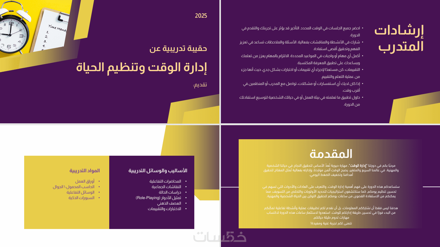 محتوى مرتّب يسهل على المدرب تقديمه دون تعقيد.