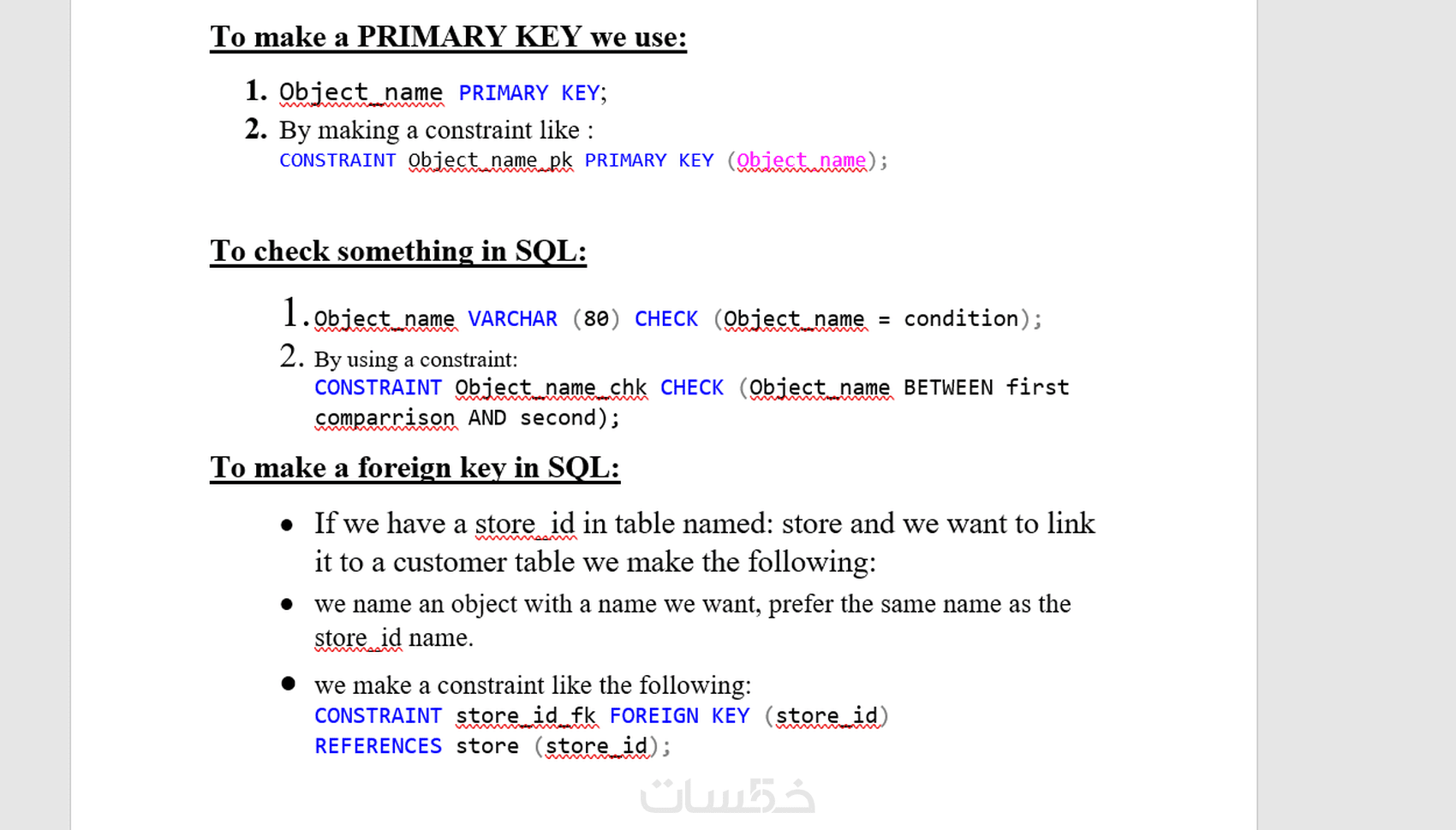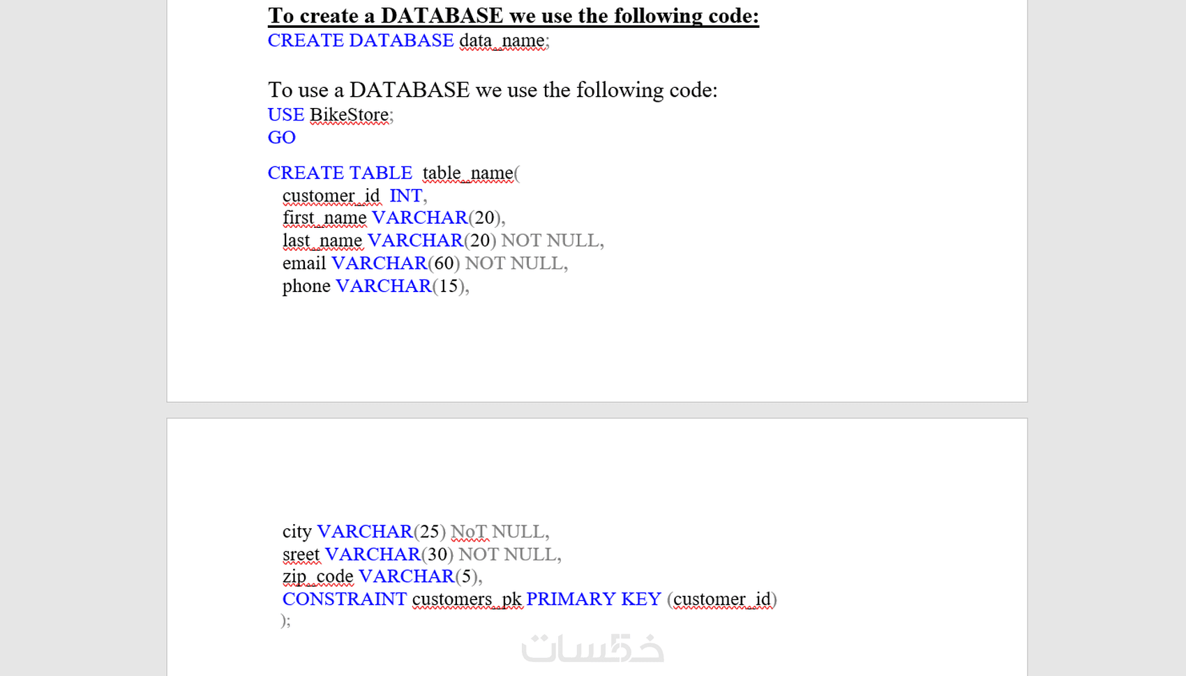 (ملف وورد من إعدادي الخاص): يحتوى على كل ما تريد معرفته عن SQL بشكل عام ومفصل والّتي تعتبر واحدة من أهم لغات التواصل مع البيانات الّتي يجب على كل شخص احترافها لأنّها أساس العمل في الشركات: تقدم الخدمة مع أمثلة وشرح مفصل لكل ما تريد معرفته كما يوجد تواصل مباشر ما بعد الخدمة يمكنك السؤال عن ما تريد أو طلب ترجمة حصرية بيانات مفصلة أو أيًا كان ما تريد بلا مقابل إن شاء اللّه.