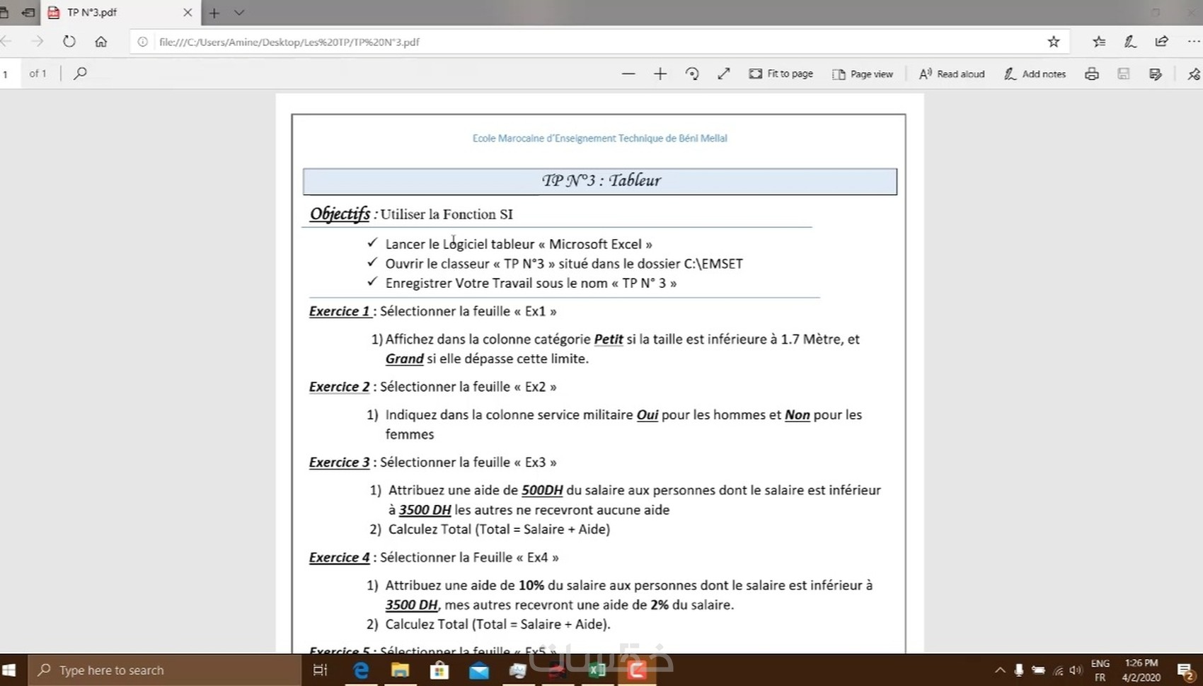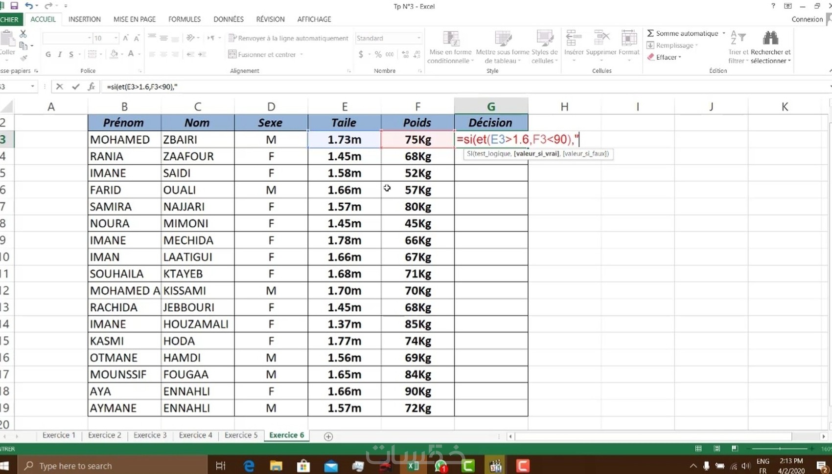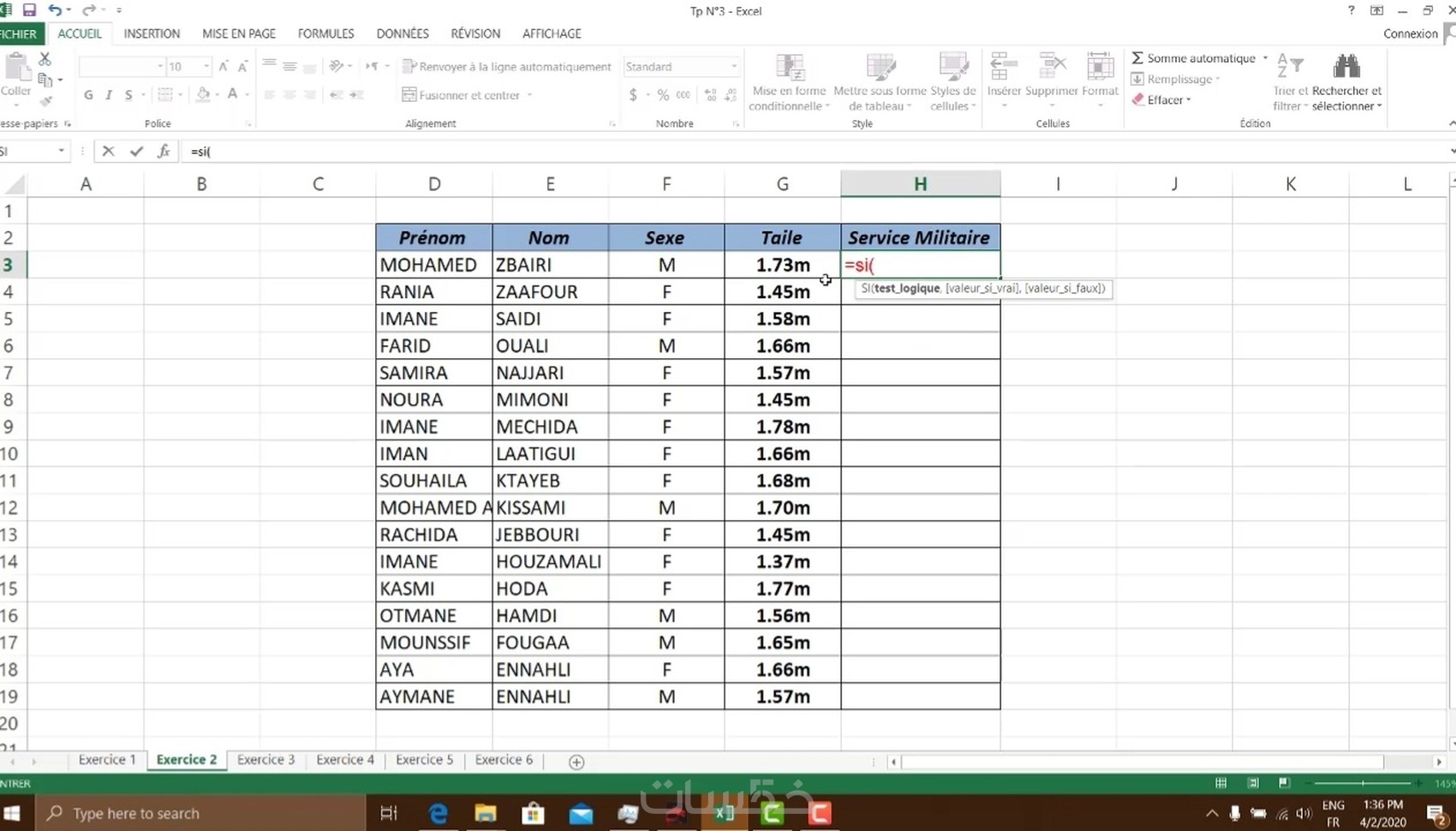 * أربعة تمارين تطبيقية مع شرح سهل لاستعمال الدالة الشرطية Si على برنامج اكسيل .