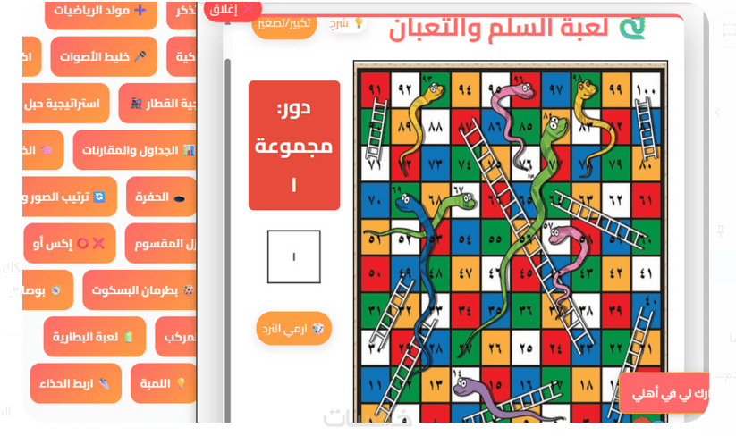 نظام تعزيز تفاعلي: ألعاب مشوقة (ماريو، السلم والثعبان، الشطرنج) لزيادة حماس الطلاب.
