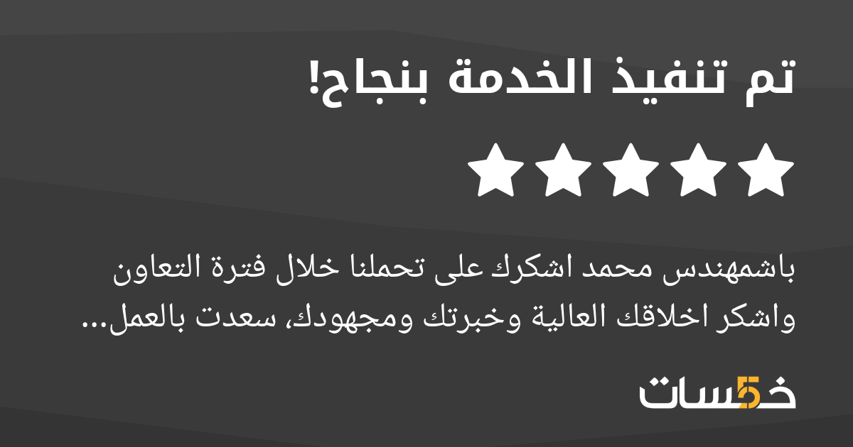 باشمهندس محمد اشكرك على تحملنا خلال فترة التعاون واشكر اخلاقك العالية وخبرتك ومجهودك، سعدت بالعمل معك. اتمنى لك التوفيق وانصح بالتعامل معك.