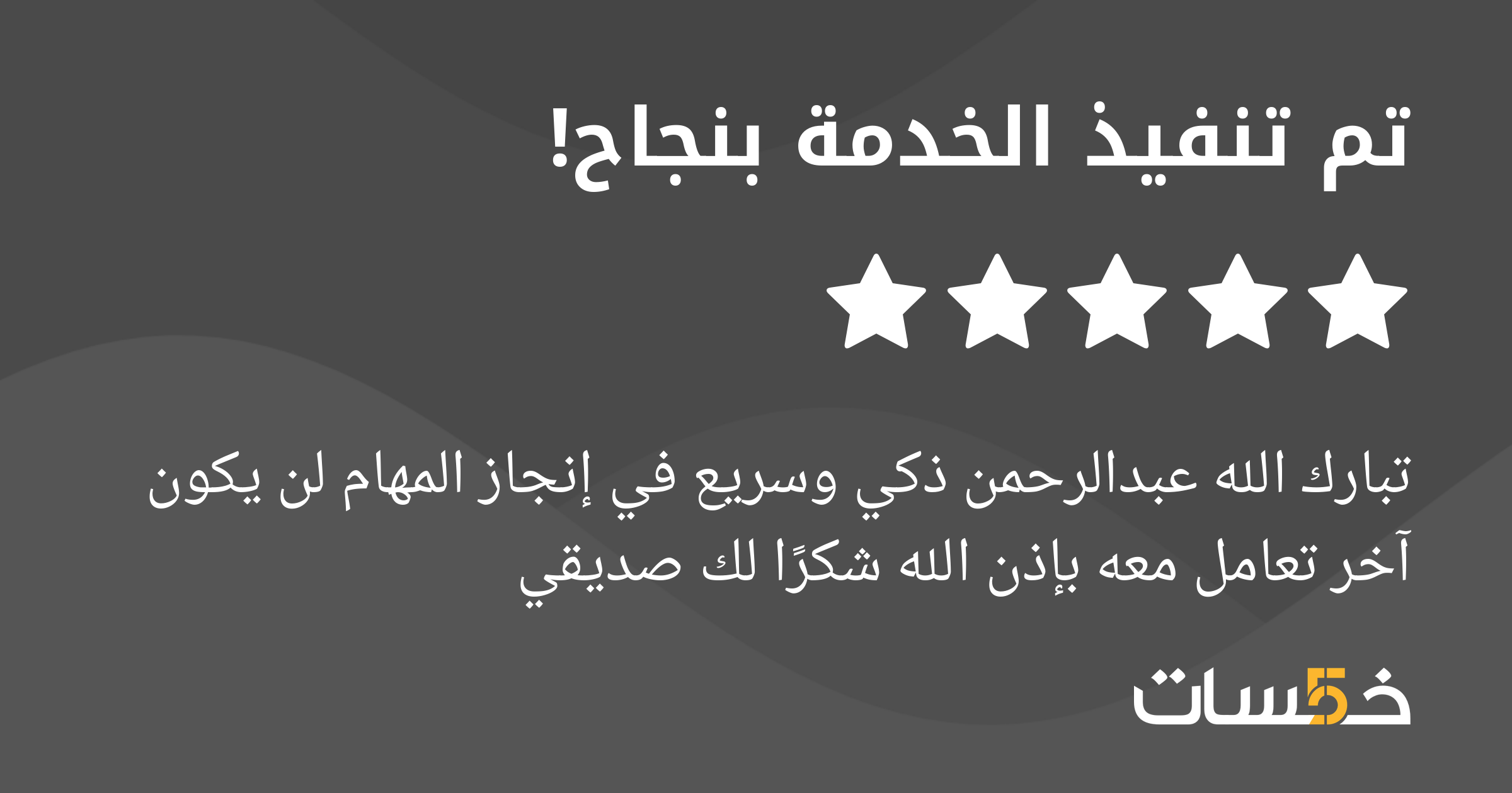 تبارك الله عبدالرحمن ذكي وسريع في إنجاز المهام لن يكون آخر تعامل معه بإذن الله شكرًا لك صديقي