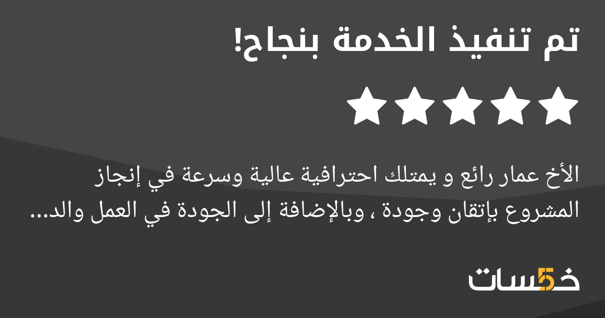 الأخ عمار رائع و يمتلك احترافية عالية وسرعة في إنجاز المشروع بإتقان وجودة ، وبالإضافة إلى الجودة في العمل والدقة في الأداء، فهو متفهم وصبور وراقي في التعامل ، جزاك الله خيرا وبارك لك في عملك، حقيقة من أفضل من تعاملت معهم في المنصة ومستمرة بإذن الله تعالى في التعاون معك