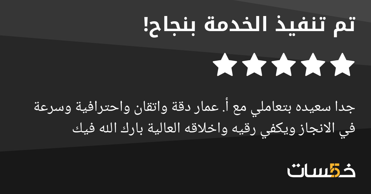جدا سعيده بتعاملي مع أ. عمار دقة واتقان واحترافية وسرعة في الانجاز ويكفي رقيه واخلاقه العالية بارك الله فيك