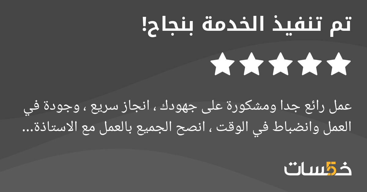 عمل رائع جدا ومشكورة على جهودك ، انجاز سريع ، وجودة في العمل وانضباط في الوقت ، انصح الجميع بالعمل مع الاستاذة اسراء . شكرا من القلب مجددا ...
