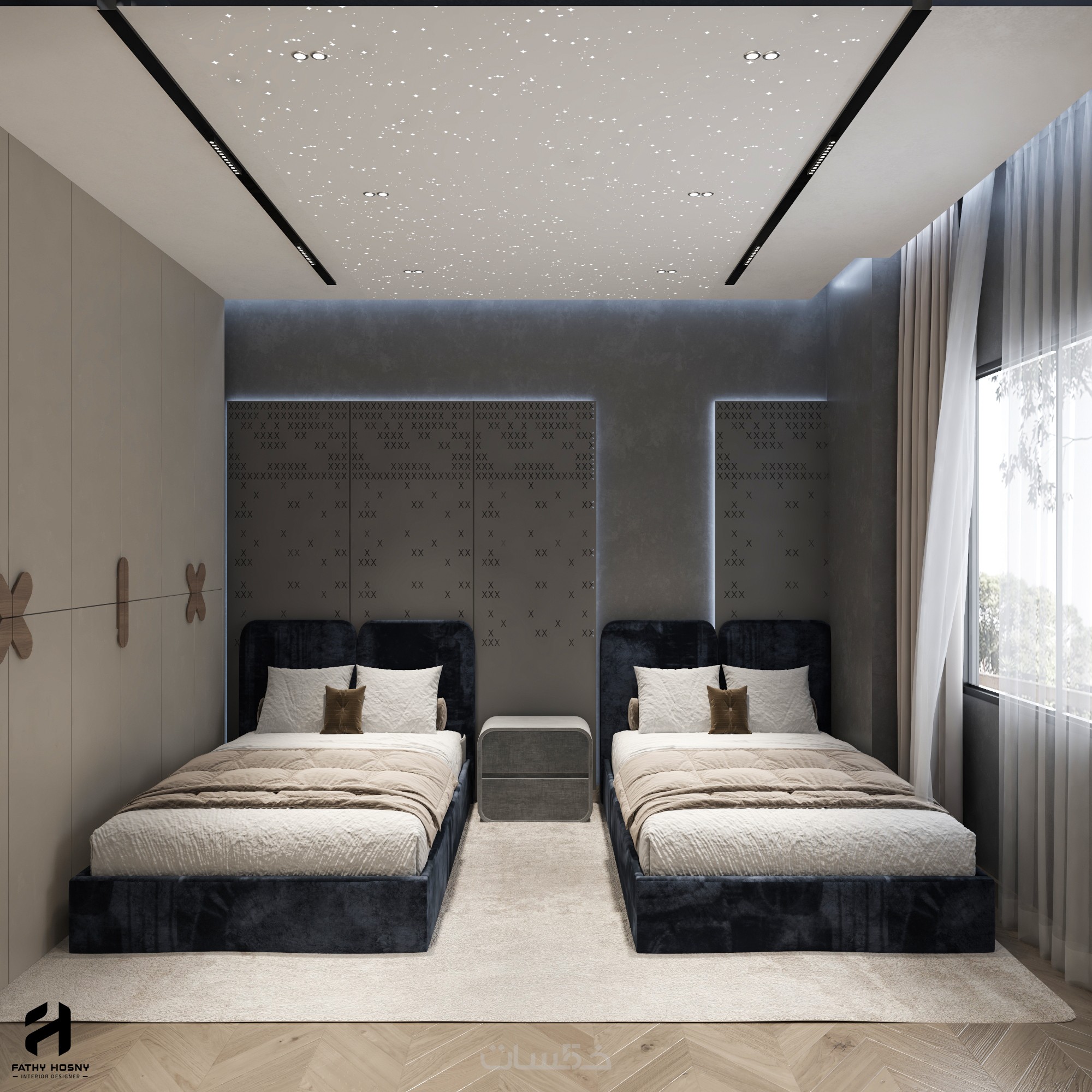 تصميم داخلى لغرف نوم ماستر وغرف اطفال بطابع فندقي