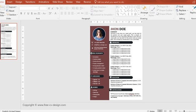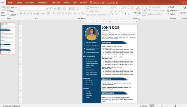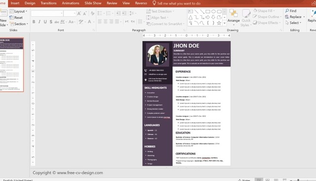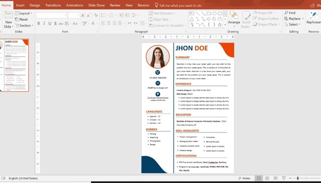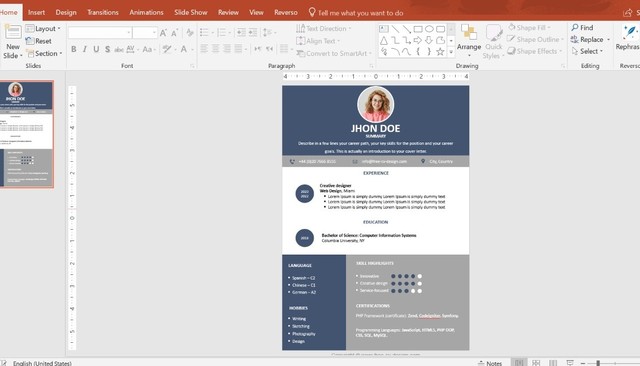 تصميم السيرة الذاتية باللغة المناسبة لك العربية او الانجليزية .