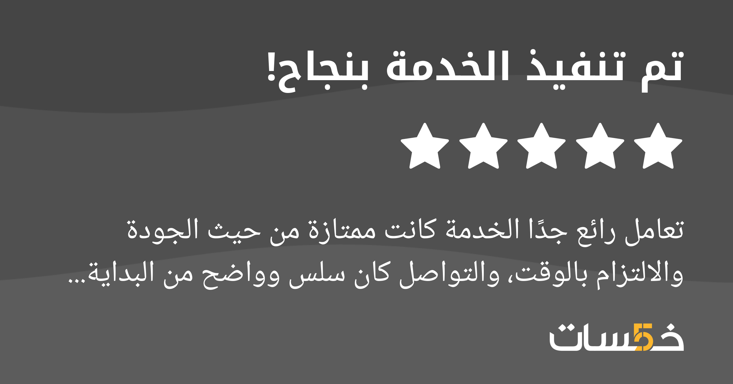 تعامل رائع جدًا الخدمة كانت ممتازة من حيث الجودة والالتزام بالوقت، والتواصل كان سلس وواضح من البداية حتى التسليم. أنصح بالتعامل معه بدون تردد، وبإذن الله لن يكون آخر تعامل بيننا.