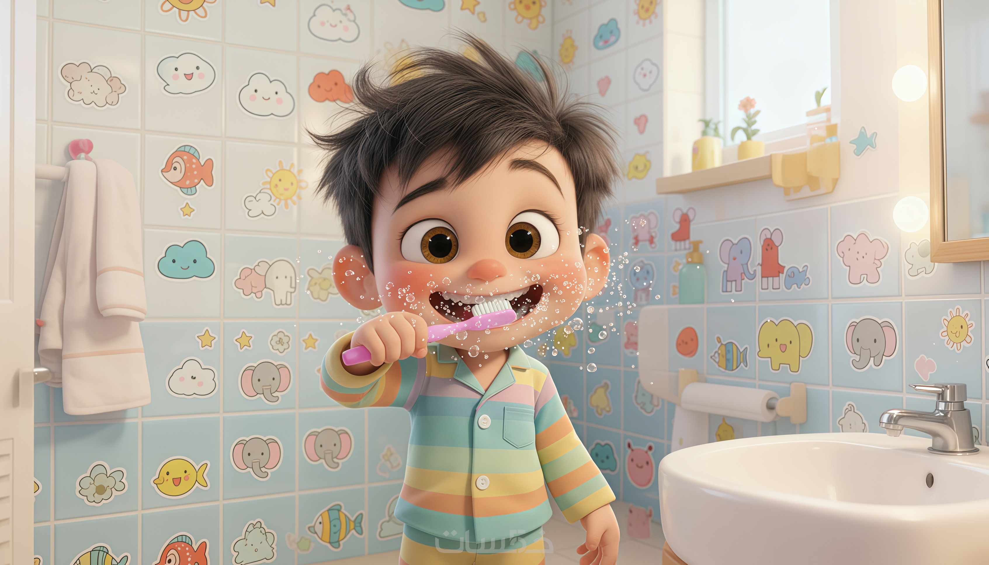 مونتاج احترافي للمقاطع مع رسوم وألوان جذابة تشد انتباه الطفل للنهاية.