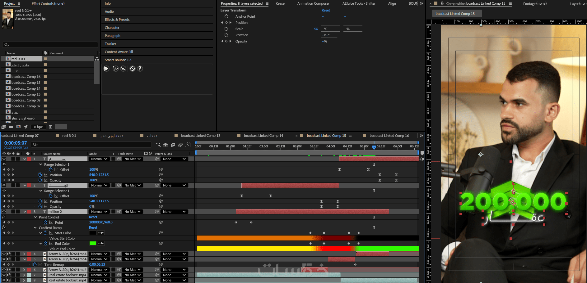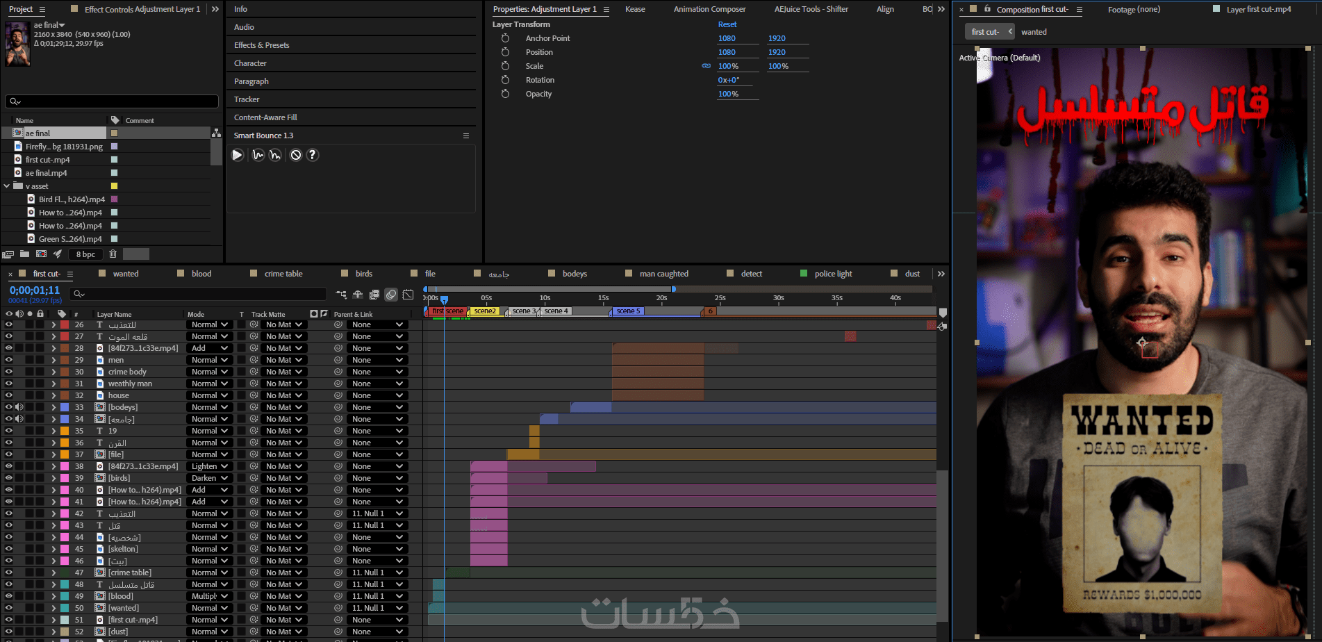 - اضافة مؤثرات بصريه تشمل الجرافيك والنصوص بشكل احترافى"VFX"