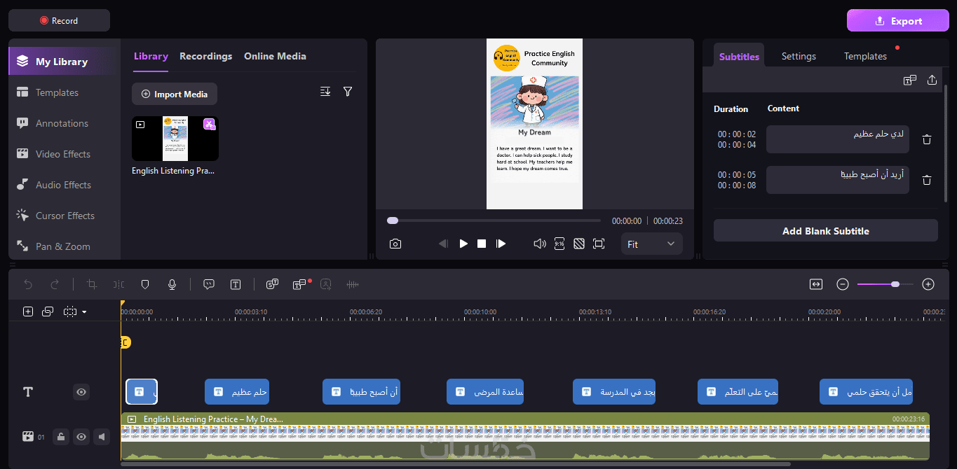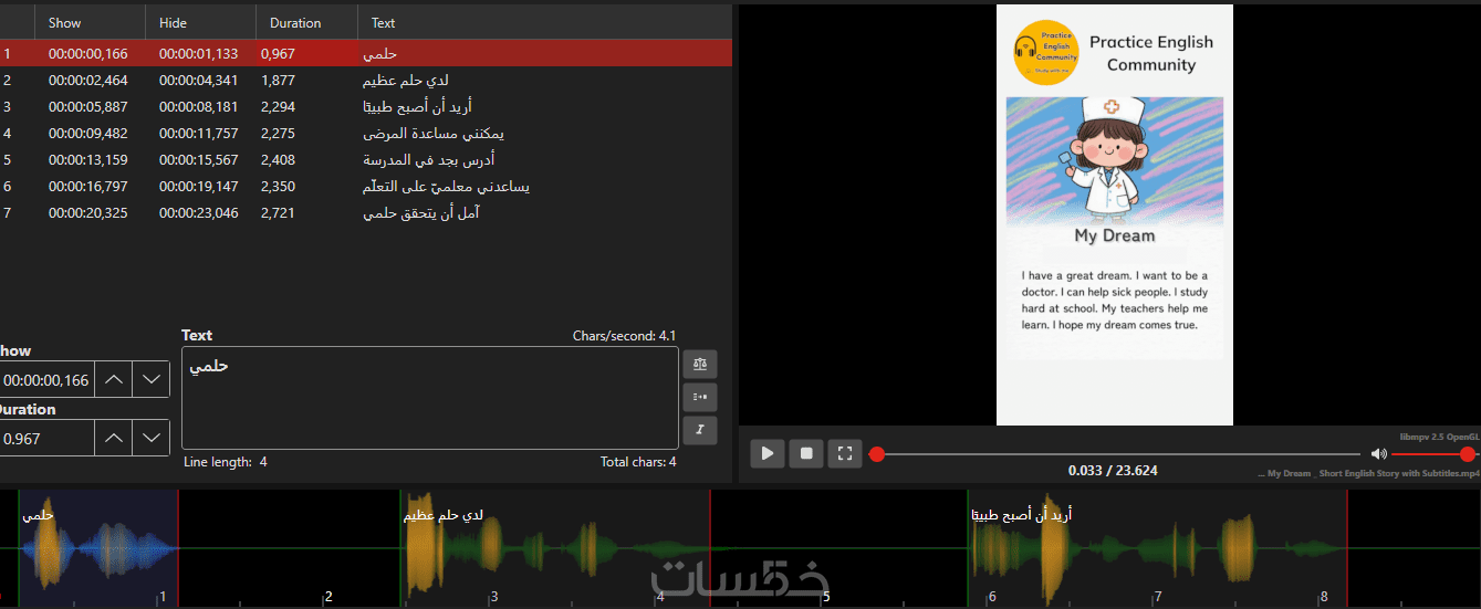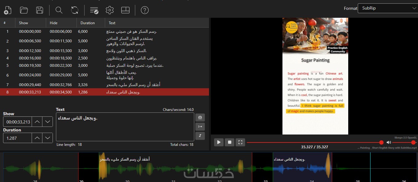 إعداد Subtitle / SRT متزامن مع الفيديو