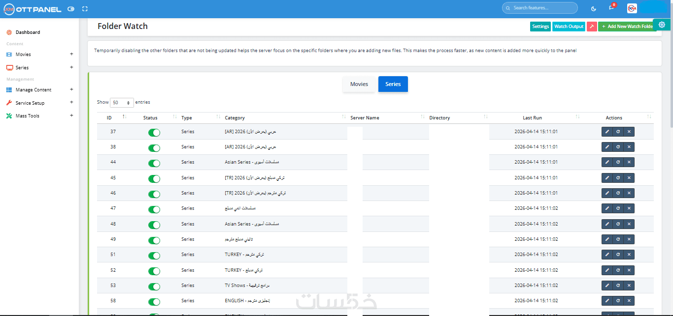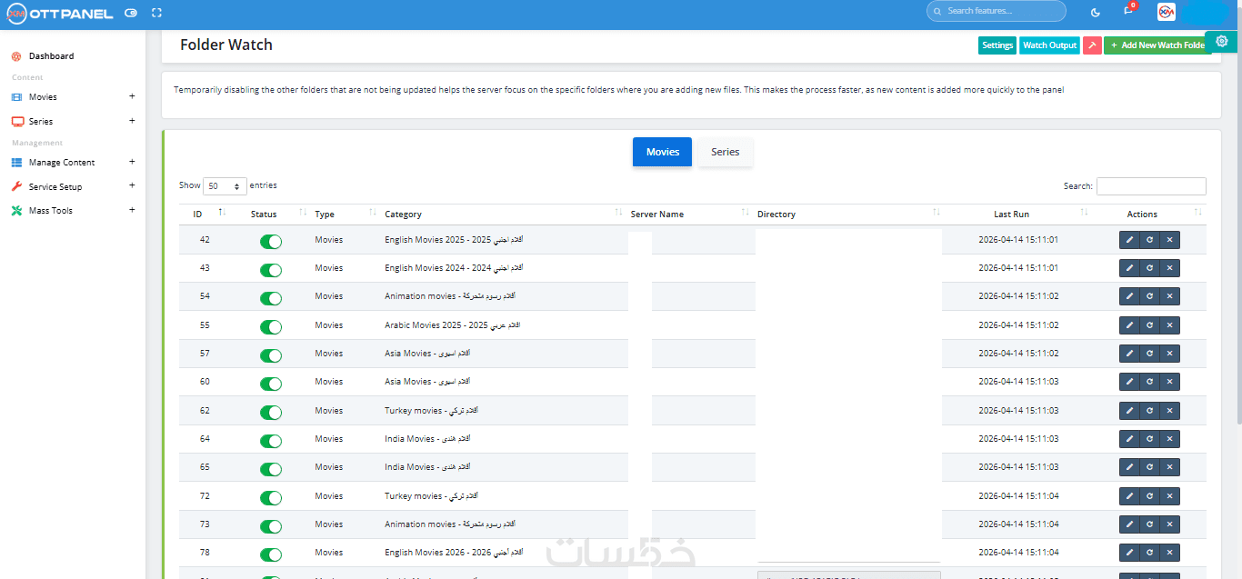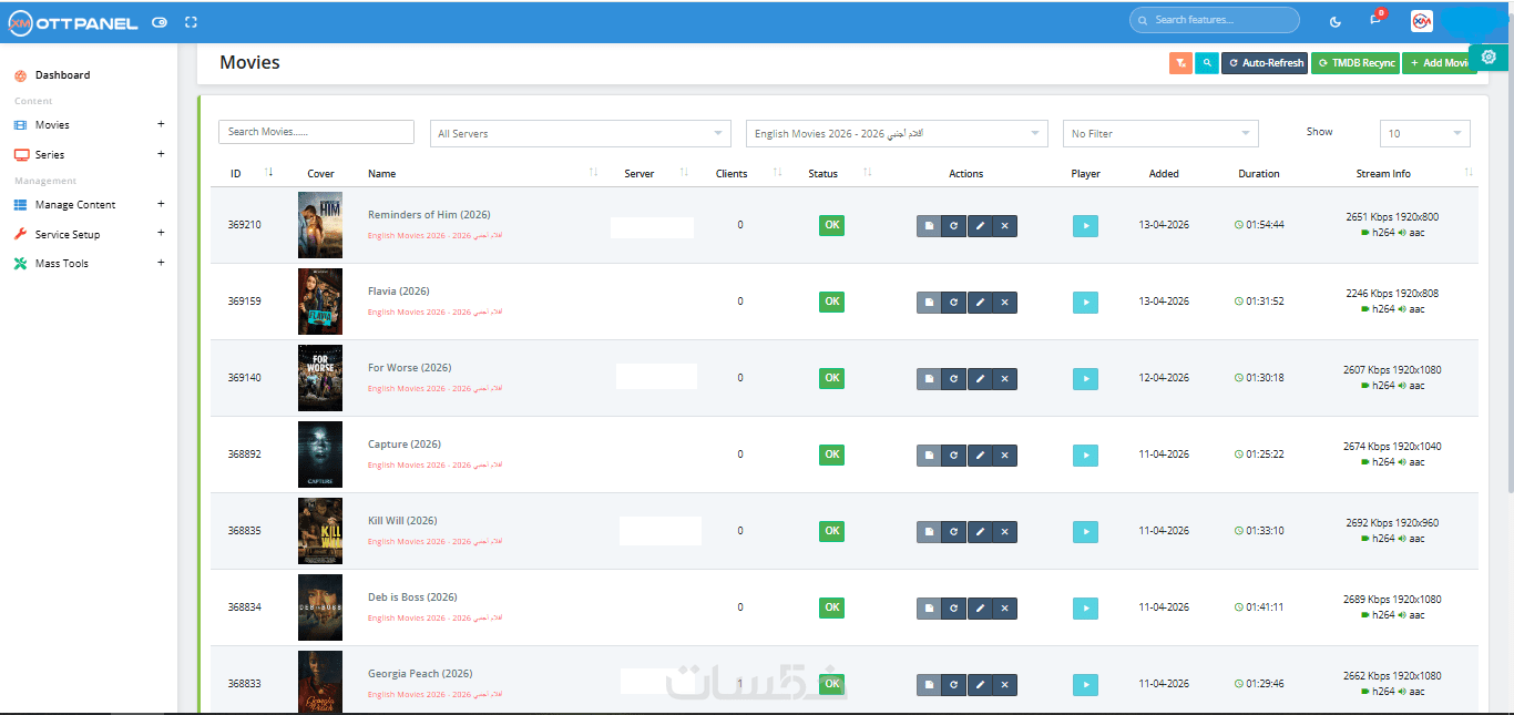 إدارة وتحديث ورفع محتوى ومكتبات سيرفرات الــ IPTV