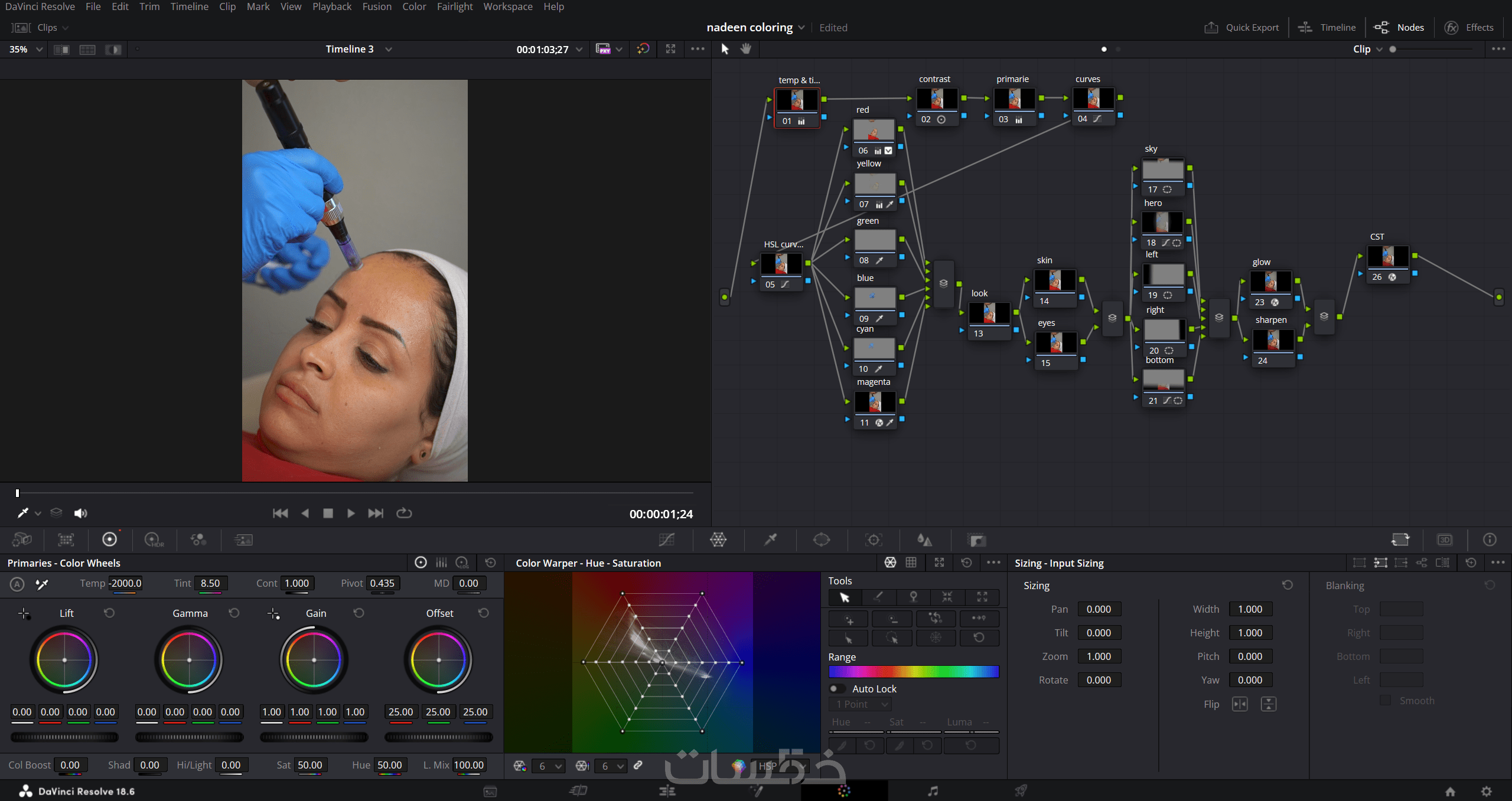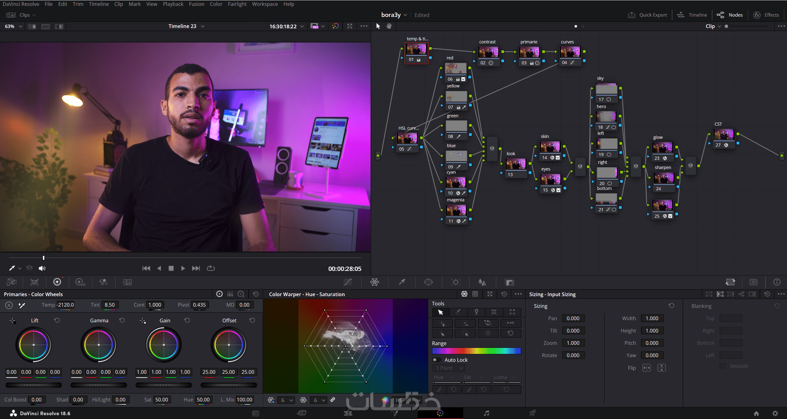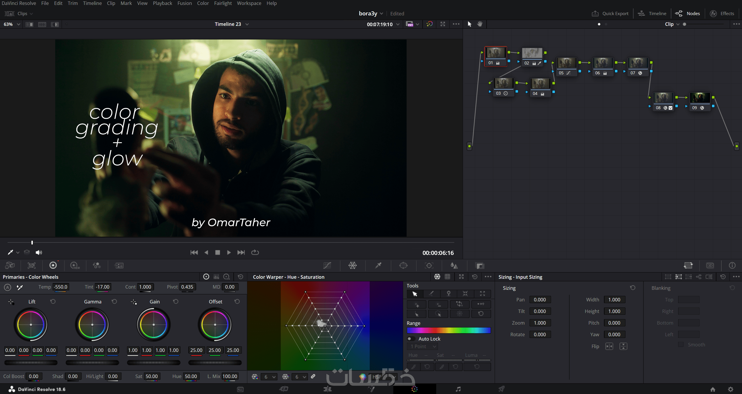 استخدم في التلوين برنامج التعديل الاحترافي دافينشي ريسولف لتصحيح الالوان وتعديلها ووضع اللمسات السينمائية الي الفيديو الخاص بيك،