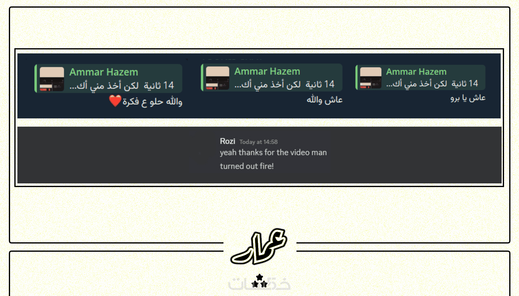 أنا عمار، بقدملك خدمة مونتاج فيديوهات باحترافية وجودة عالية تناسب كل المنصات.