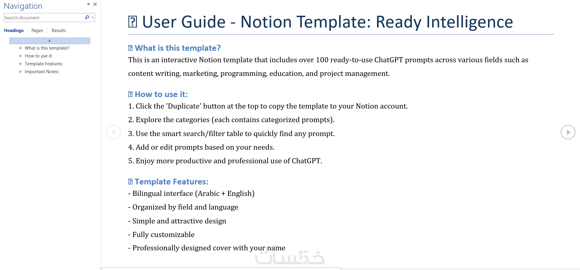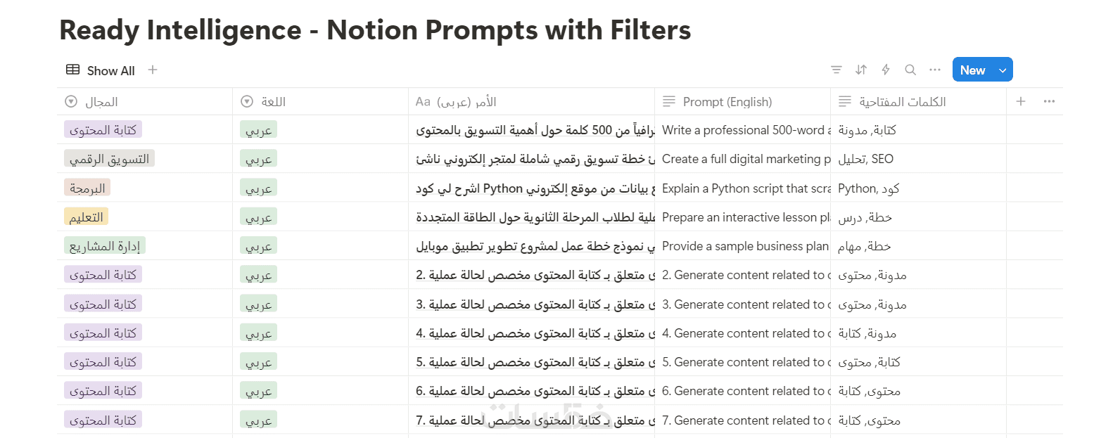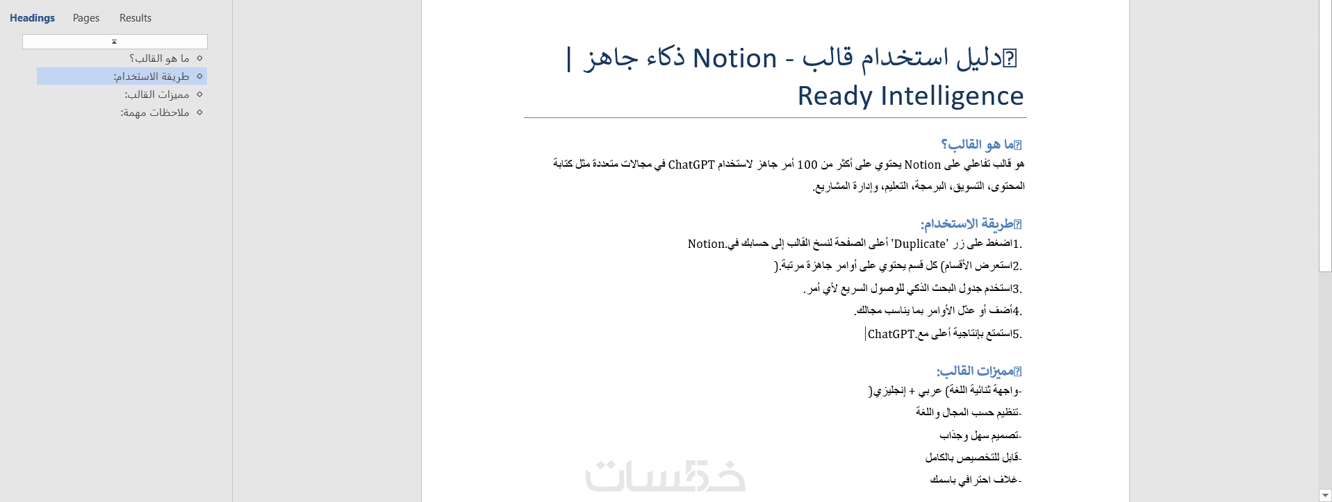 قالب Notion تفاعلي: ذكاء جاهز Ready Intelligence