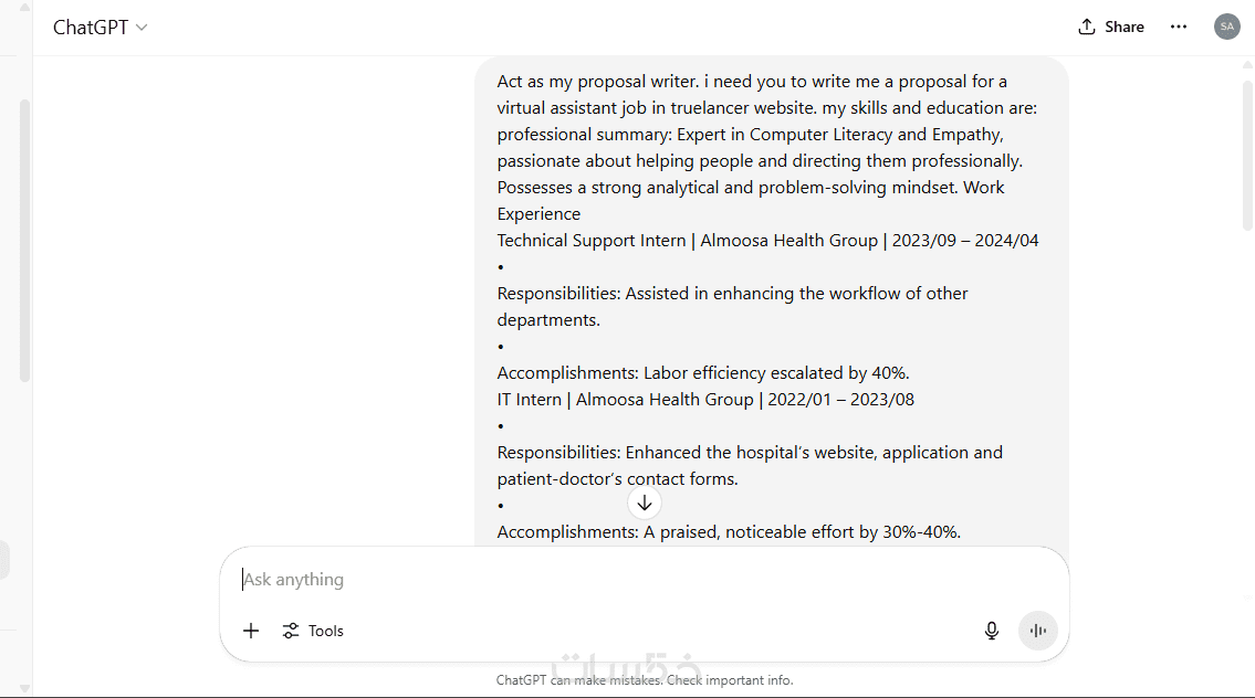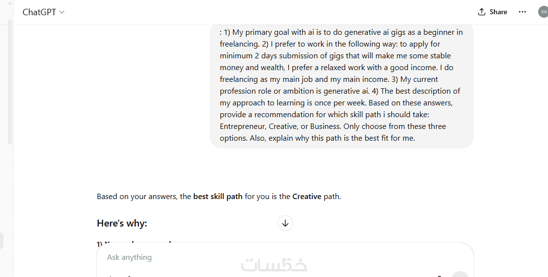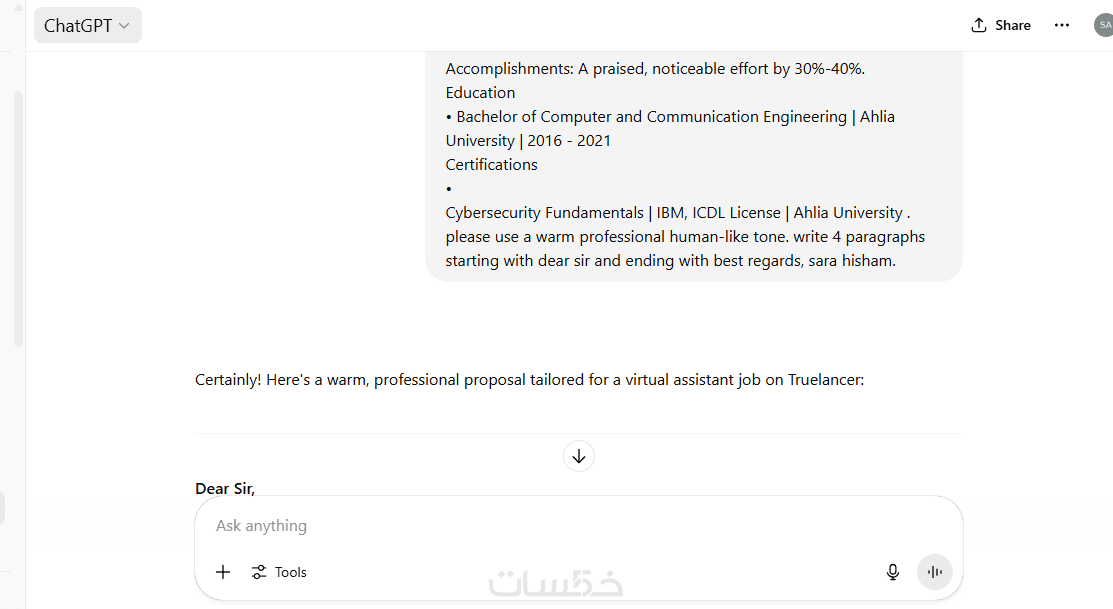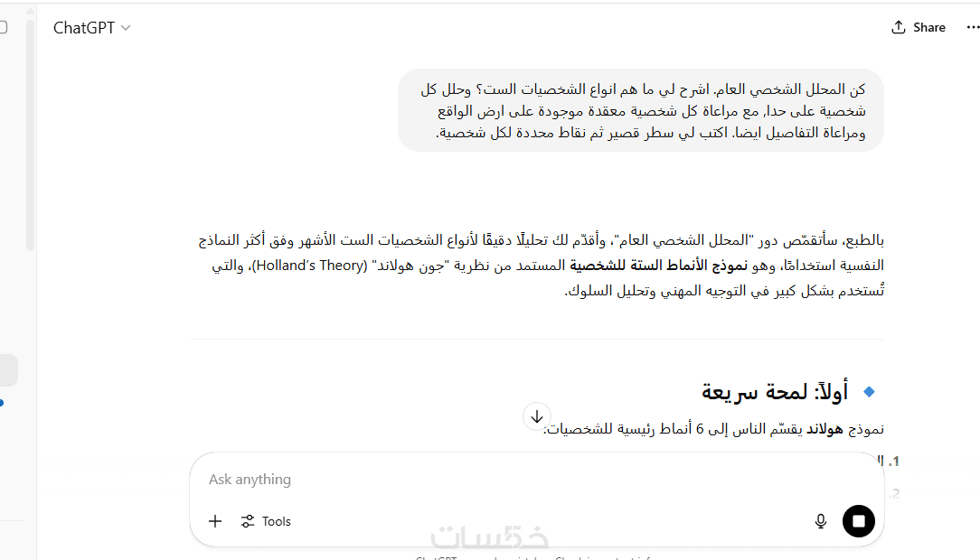 مستشارة ذكاء اصطناعي – إجابات دقيقة واحترافية عبر ChatGPT