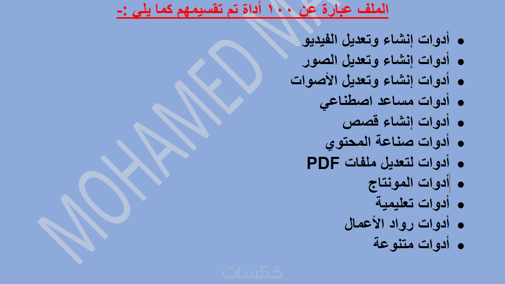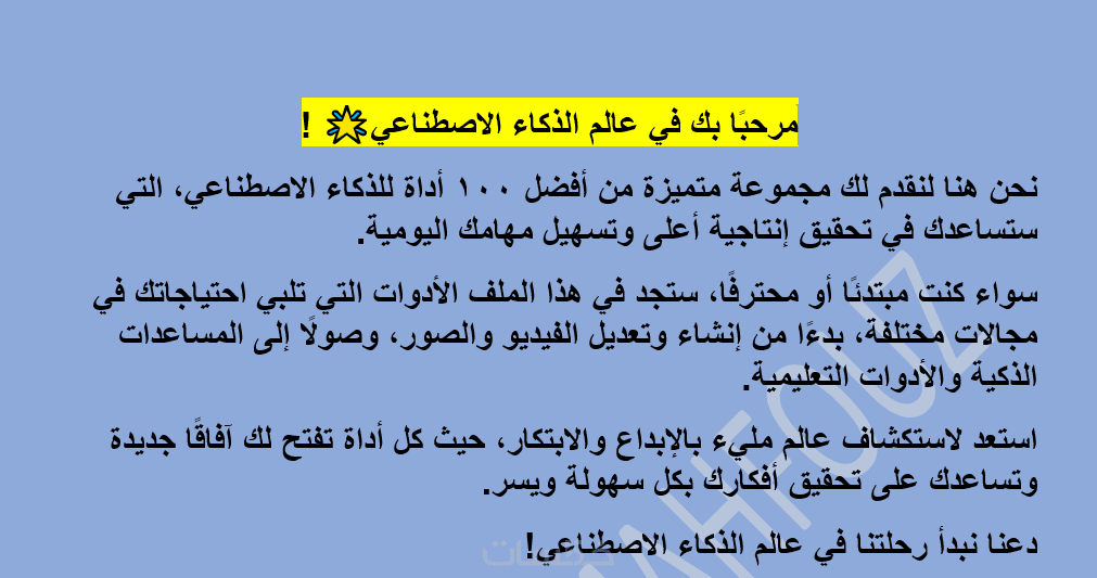 ملف PDF يحتوي على أدوات ذكاء اصطناعي لمختلف المجالات