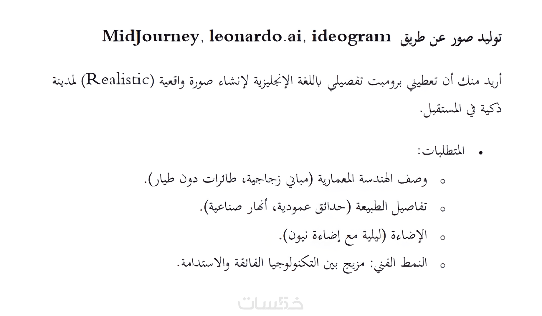 1 - كتابة Prompts ذكية ودقيقة لـ (ChatGPT، MidJourney، DALL-E, deepseek) لاستخراج أفضل النتائج.