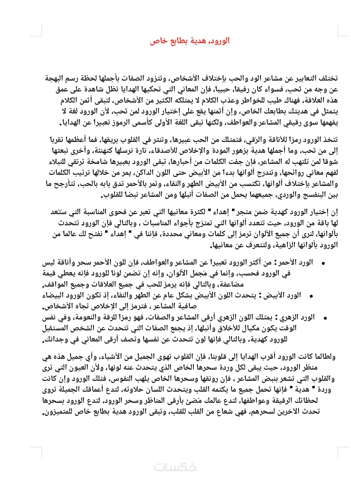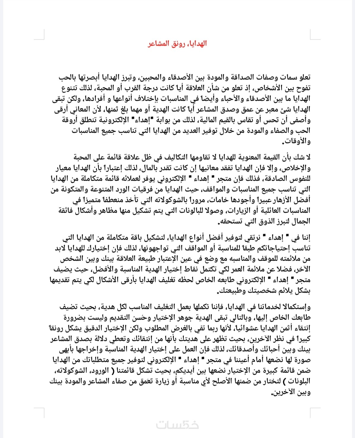 فمن خلال خبرة سنوات كثيرة في مجال الكتابة والخواطر تمكنني من إنجاز جميع المقالات والمواضيع التي تريدها بإحترافية شديدة والحمد لله، المقال أو الموضوع سيكون جديد تماماً ولن يقتبس من صفحات الانترنت، المقالات تكون بأسلوبي الخاص وسيكون متوافقاً مع السيو إذا رغبت به لمدونتك أو موقعك، الدفع يتم بعد تسليم الخدمة كاملة بإذن الله ..