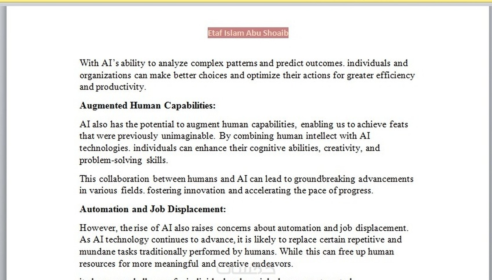بالنسبة للأستاذة عطاف، فهي كاتبة مميزة جدًا في صياغة المقالات، حيث أظهرت مهارة عالية في انتقاء الأسلوب المناسب وجودة المحتوى. كذلك، تتميز بسرعة الاستجابة في التواصل، ما يجعل التعامل معها سلسًا وفعّالًا. أنجزت المهمة المطلوبة بدقة وفي الوقت المحدد، وكانت النتيجة مطابقة تمامًا للتوقعات. أنصح بالتعامل معها بشدة وأتمنى لها المزيد من التوفيق.