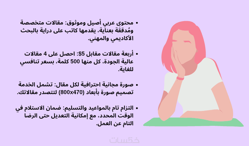 - أقدم لكم مقالات حصرية %100 ومتوافقة مع شروط السيو تتصدر محركات البحث مقابل خدمة واحدة.