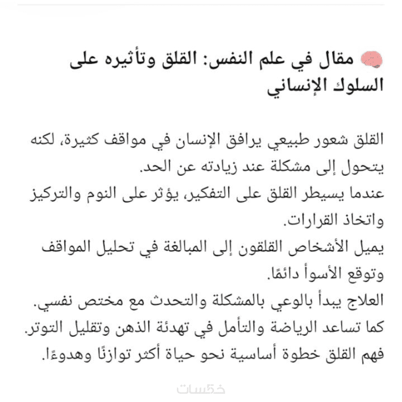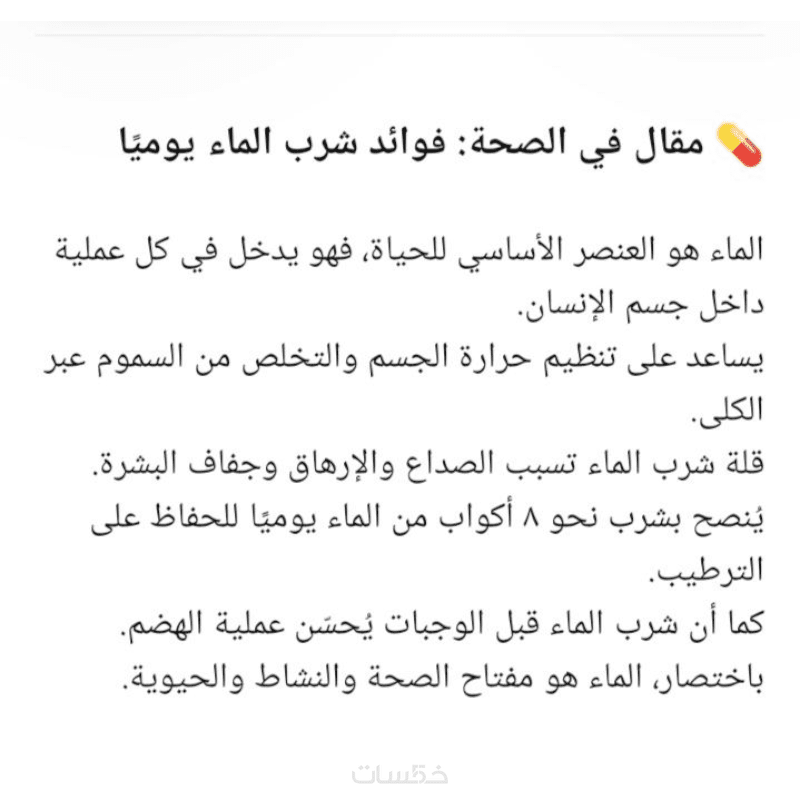 لا تتجاوز ٥٠٠ كلمة خالية من الأخطاء الإملائية والنحوية في أي مجال "الصحة، علم النفس، التاريخ، الأدب، وما شابة"