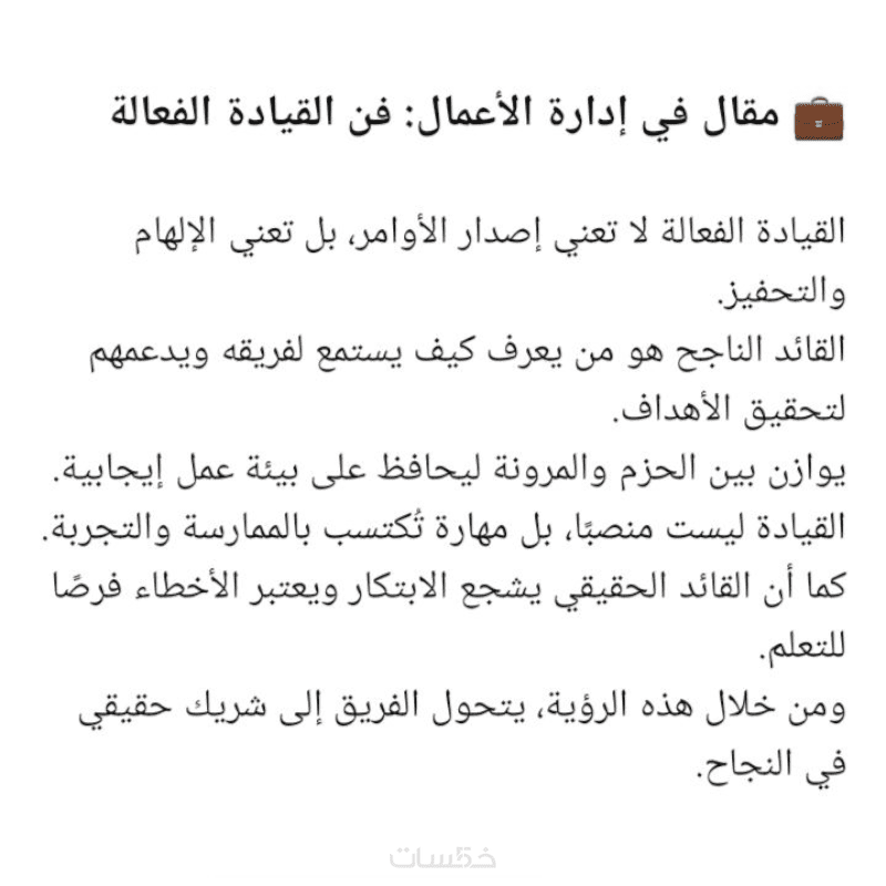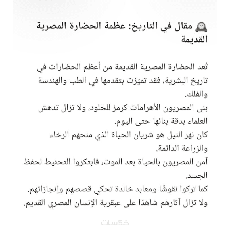 مقالة باللغة العربية الفصحي لا تتجاوز ٥٠٠ كلمة بصيغة ملف word