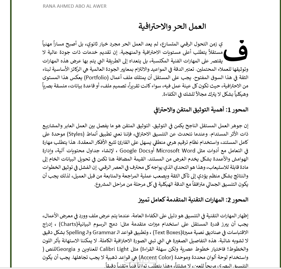 4.صيغة التسليم: ملف Microsoft Word منسق باحترافية وجاهز للنشر الفوري.